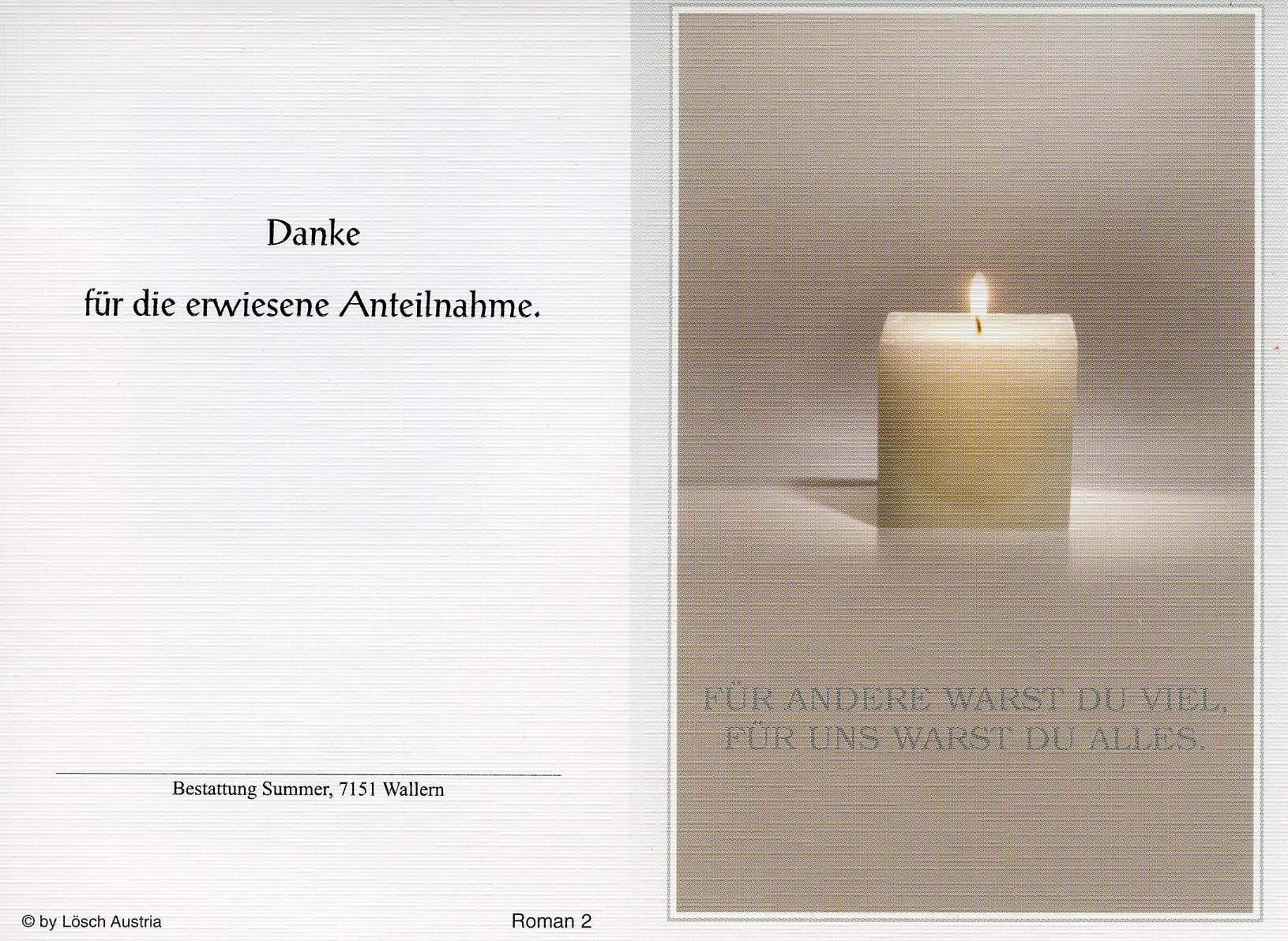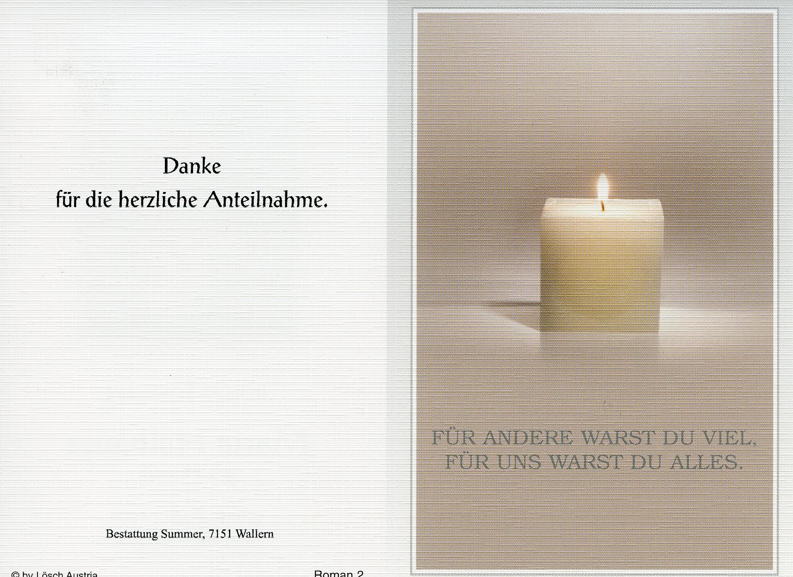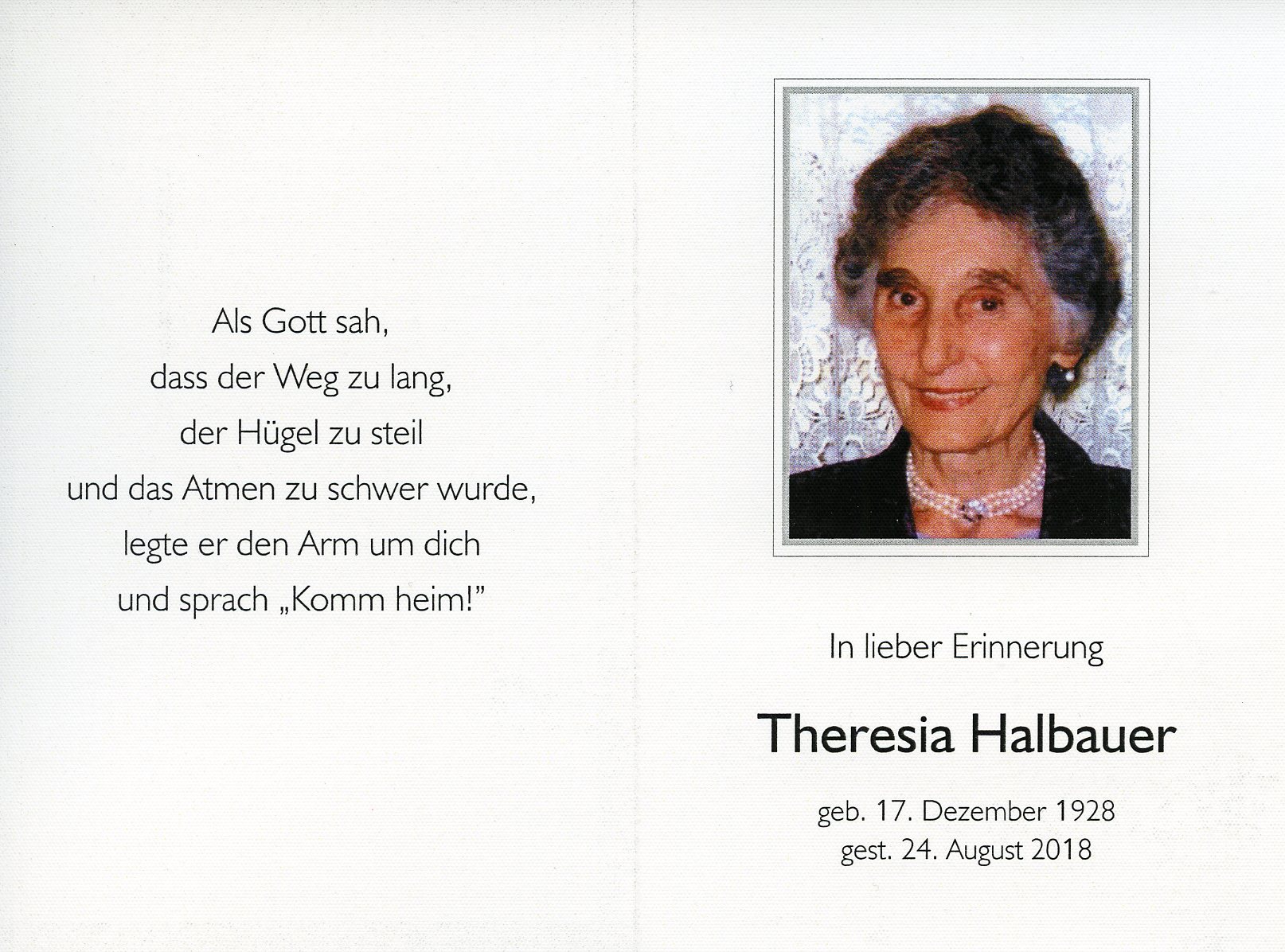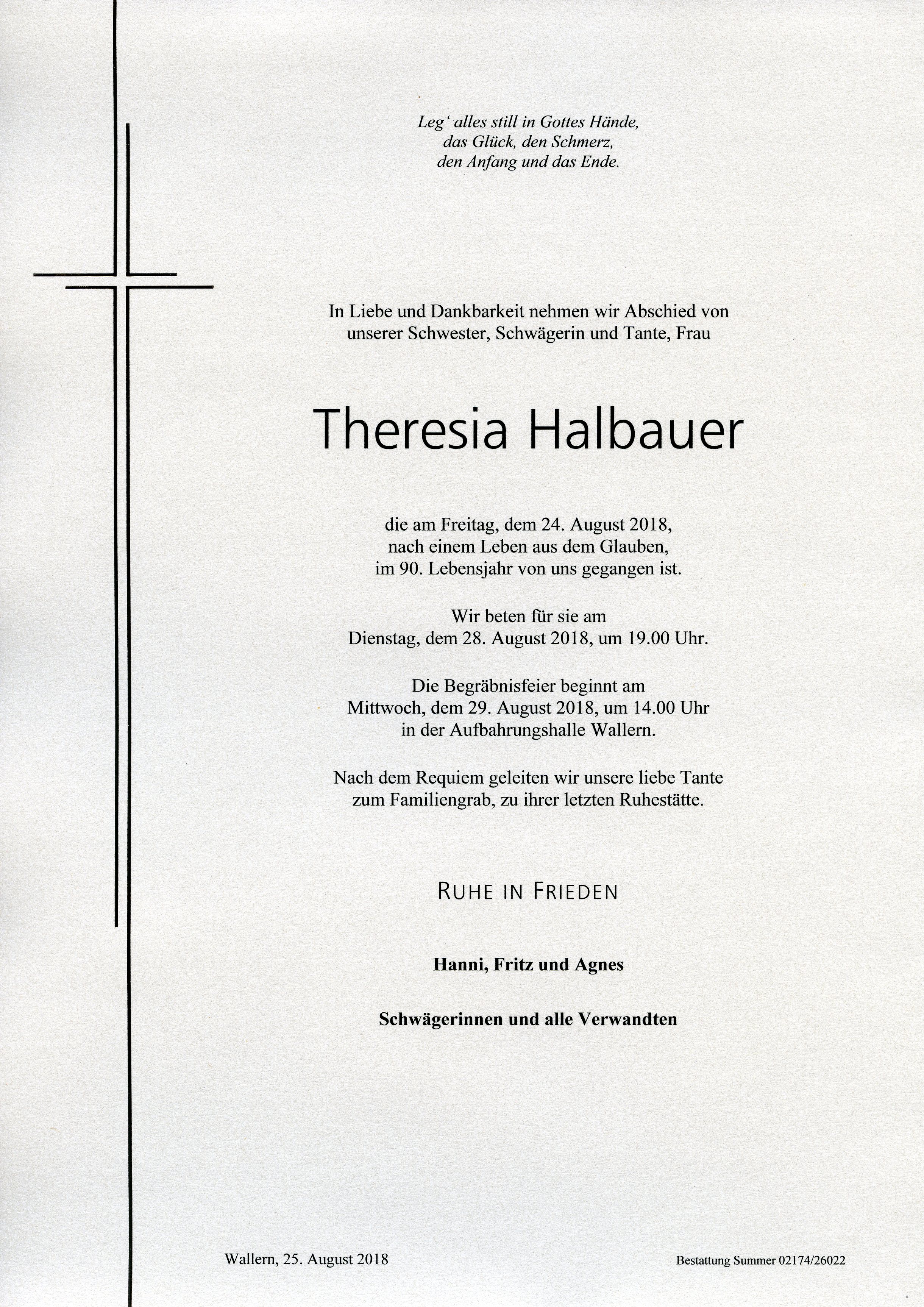 Halbauer Theresia aus 7000 Eisenstadt, gestorben am 24. August 2018
