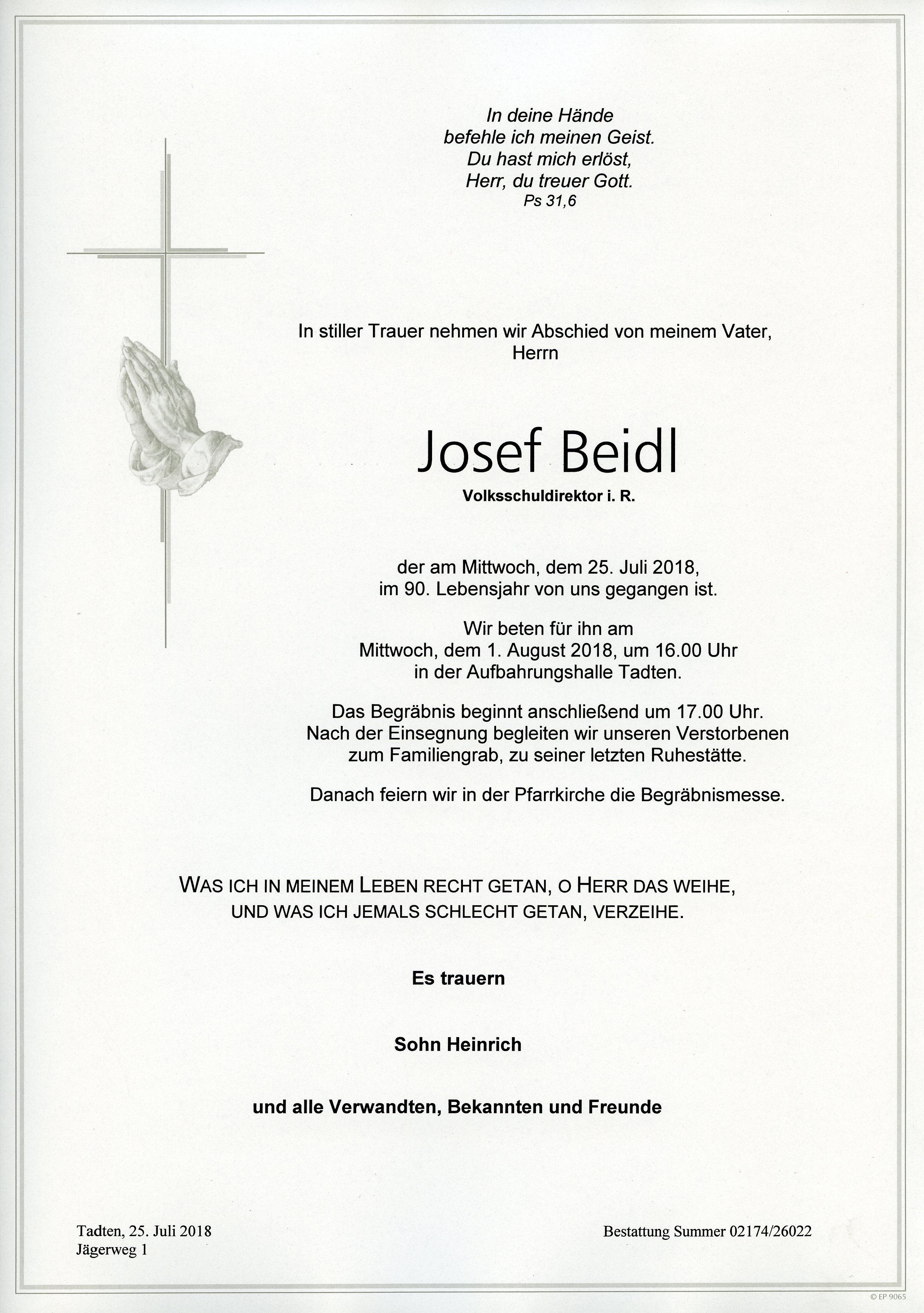 Beidl Josef aus 7162 Tadten, gestorben am 25. Juli 2018