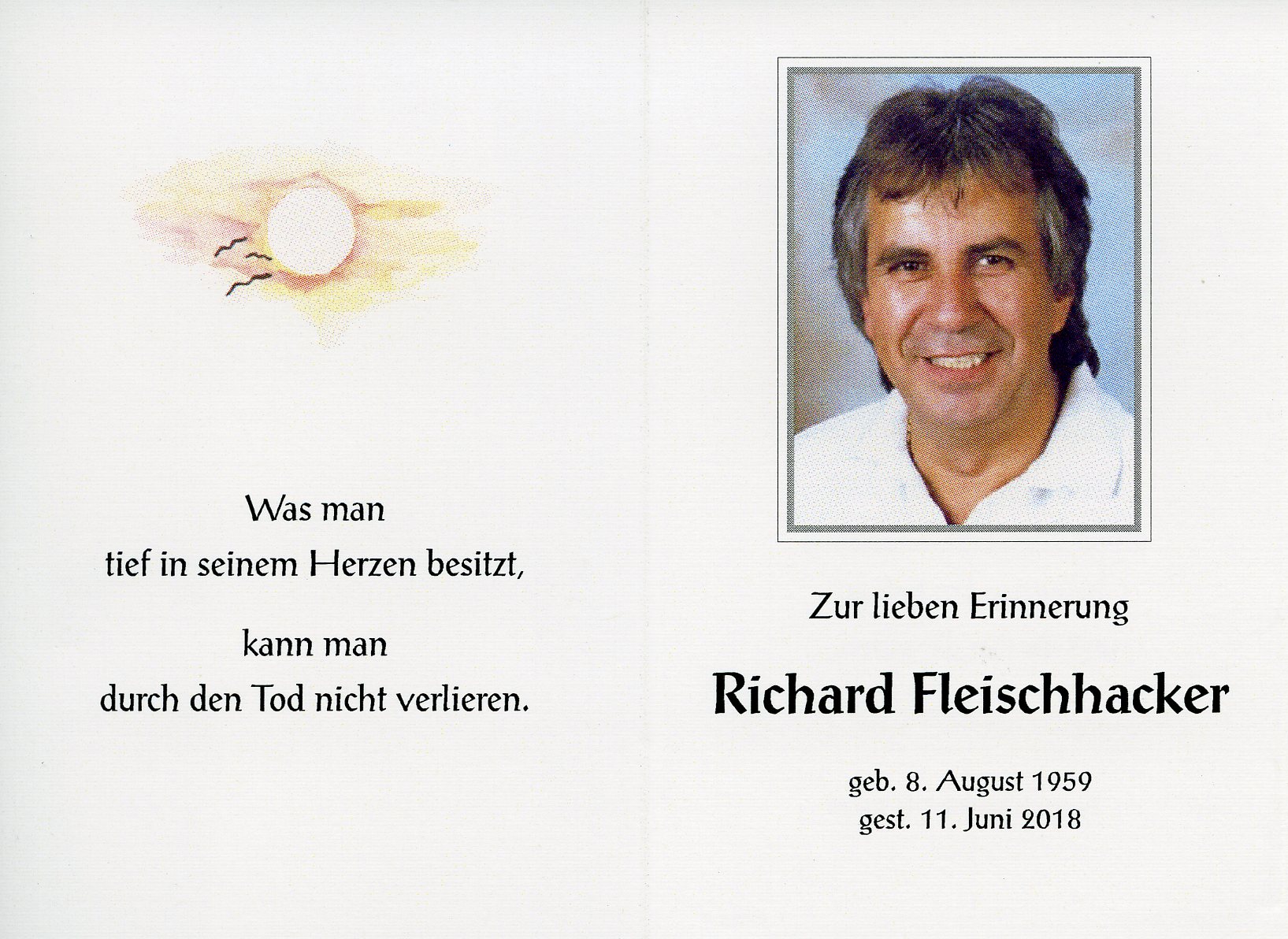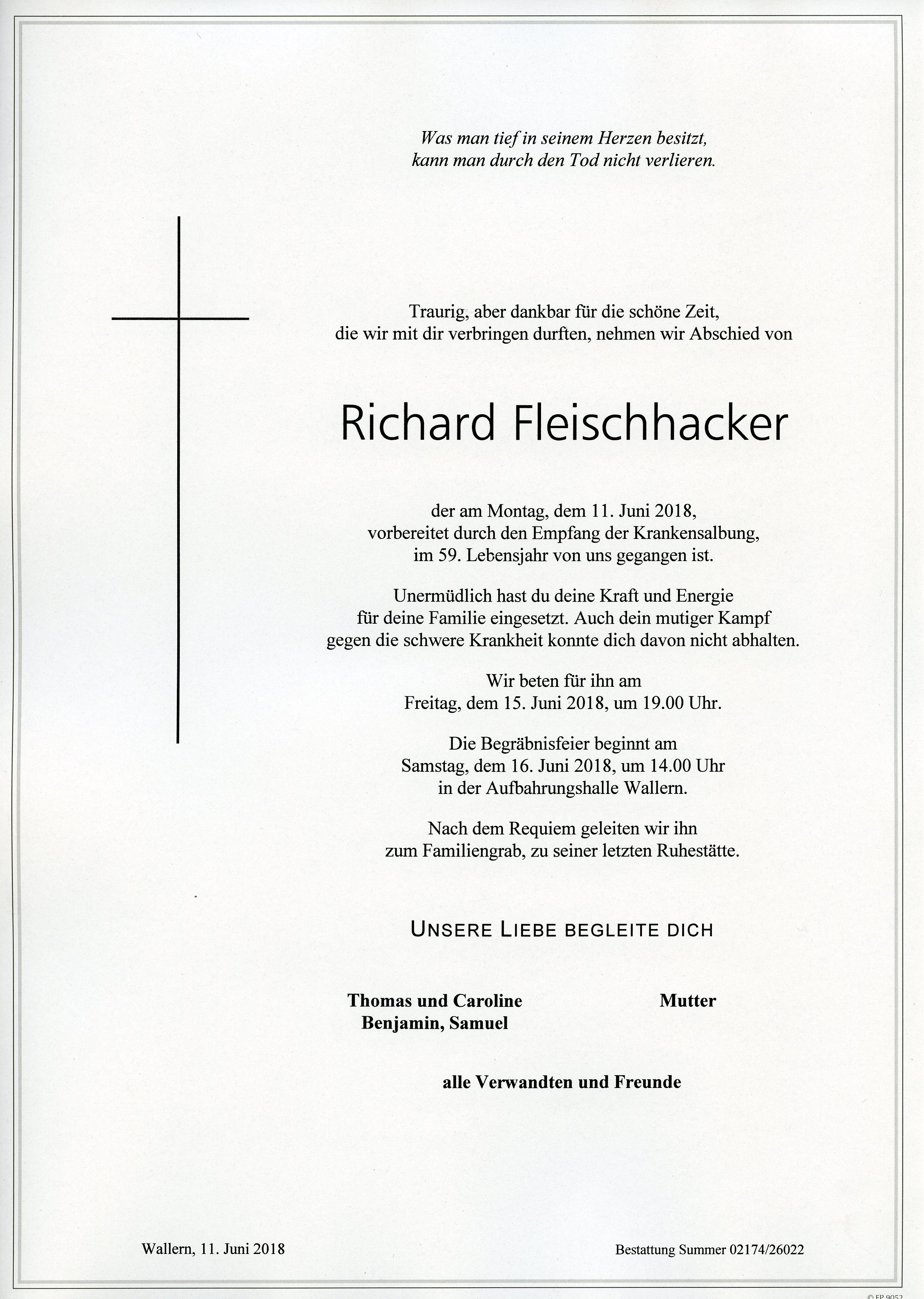 Fleischhacker Richard aus 7151 Wallern, gestorben am 11. Juni 2018