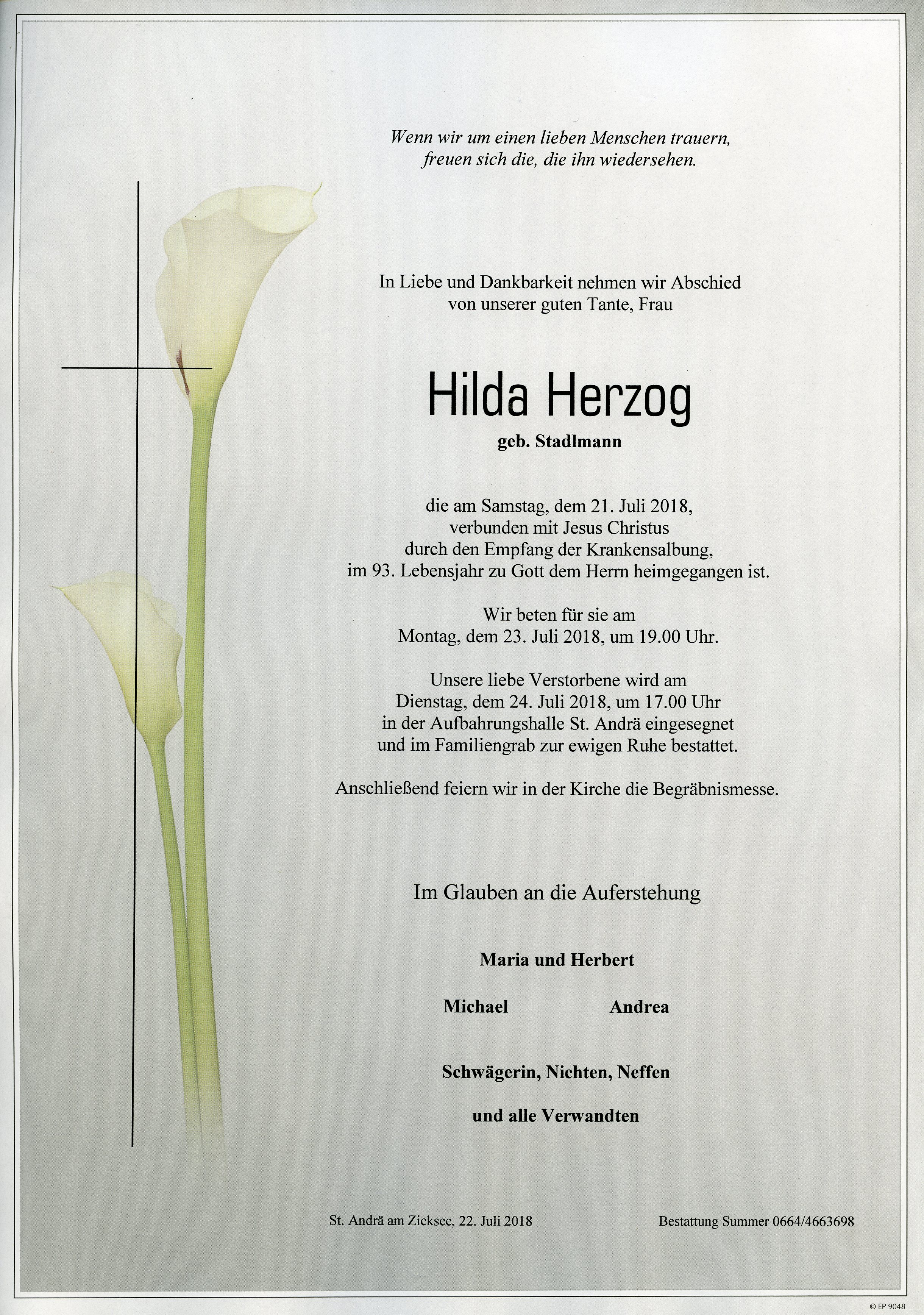 Herzog Hilda aus 7161 St. Andrä am Zicksee, gestorben am 21. Juli 2018