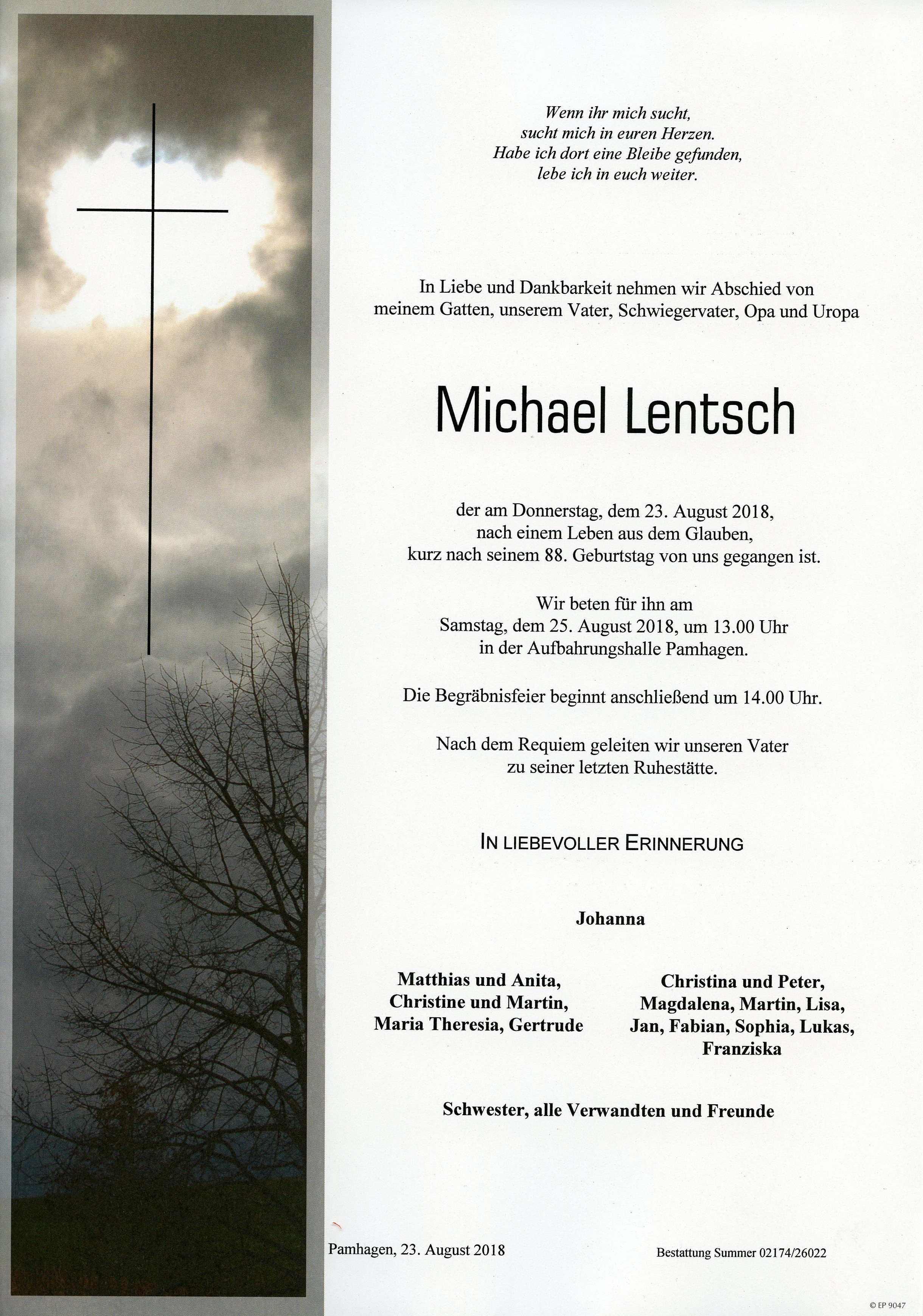 Lentsch Michael aus 7152 Pamhagen, gestorben am 23. August 2018