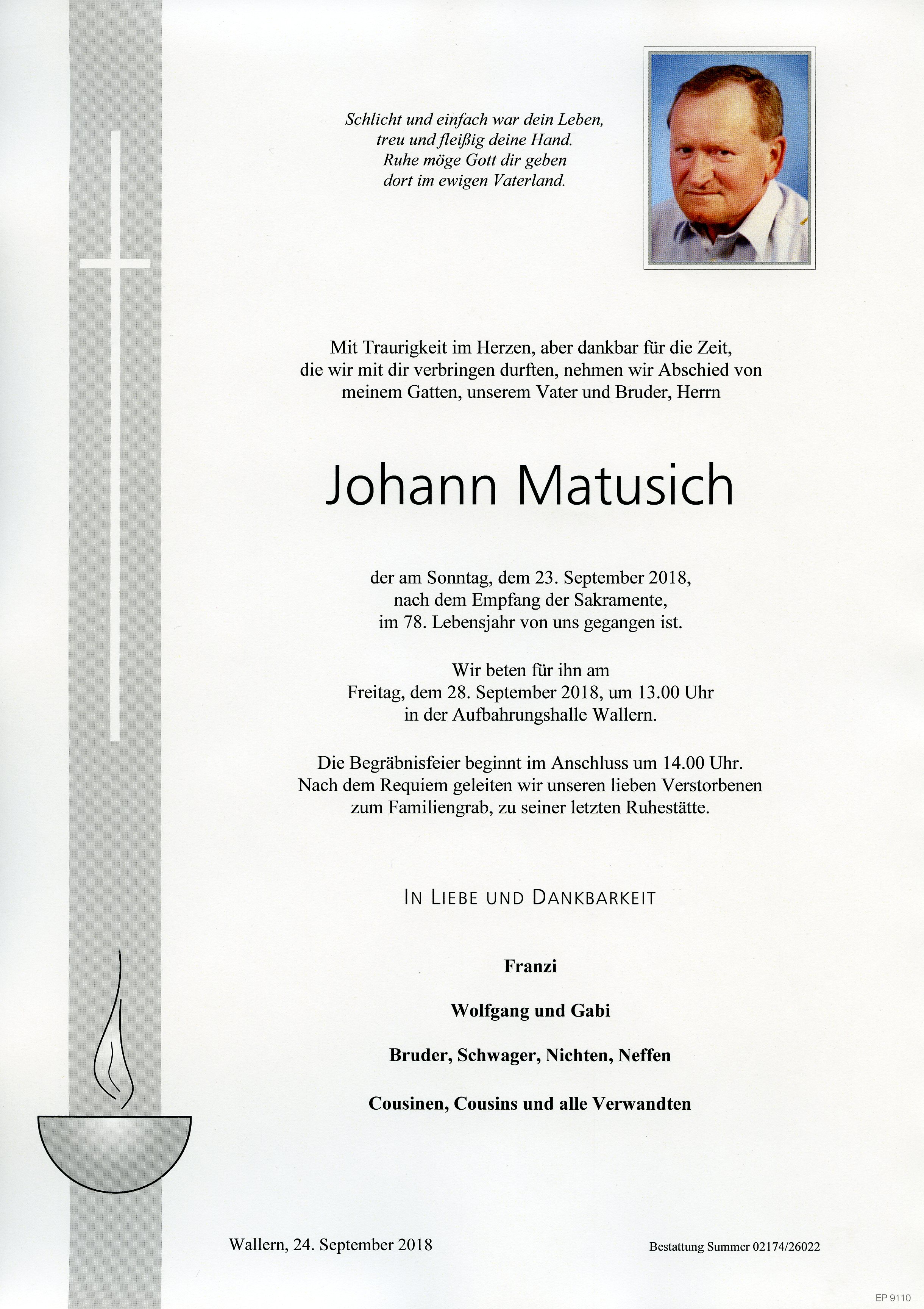 Matusich Johann aus 7151 Wallern, gestorben am 23. September 2018