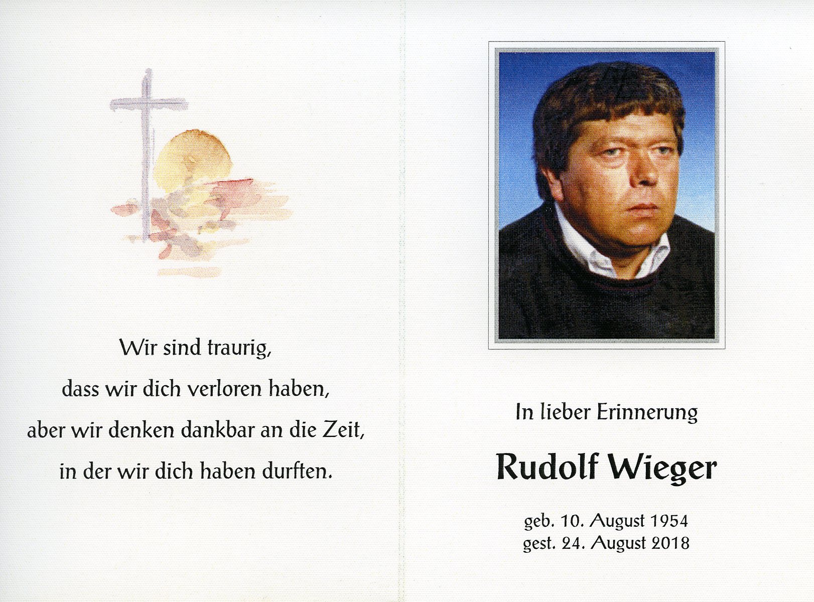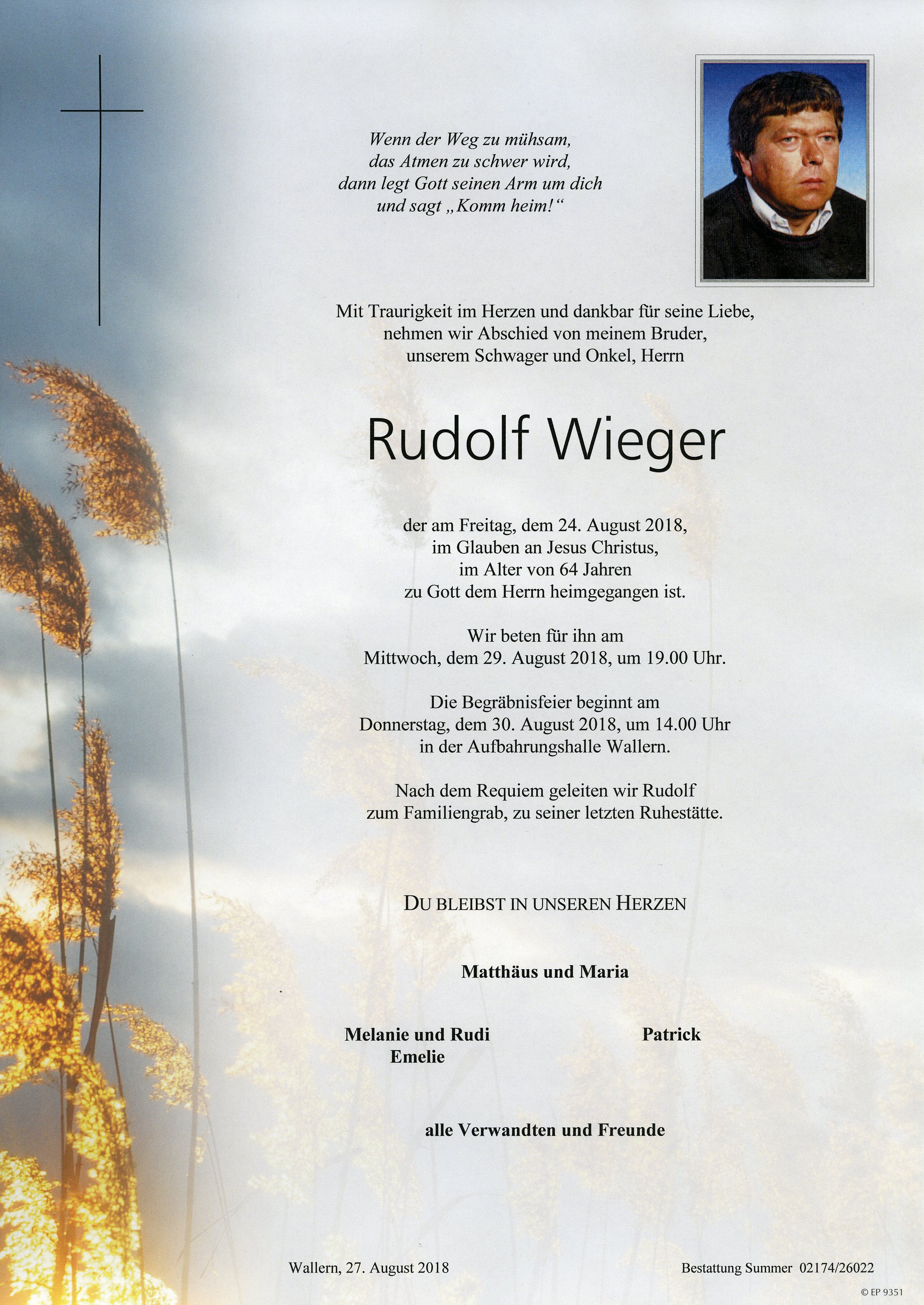 Wieger Rudolf aus 7151 Wallern, gestorben am 24. August 2018