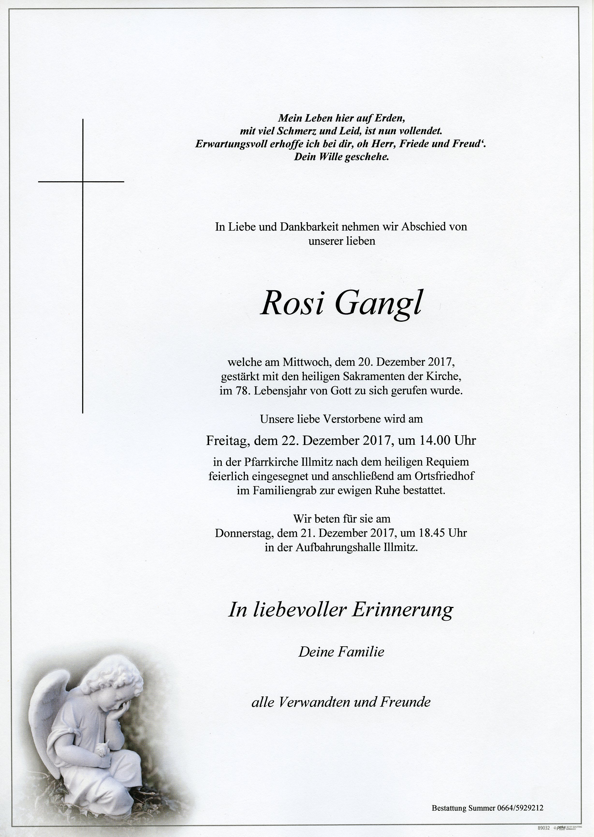 Gangl Rosa aus 7142 Illmitz, gestorben am 20. Dezember 2017