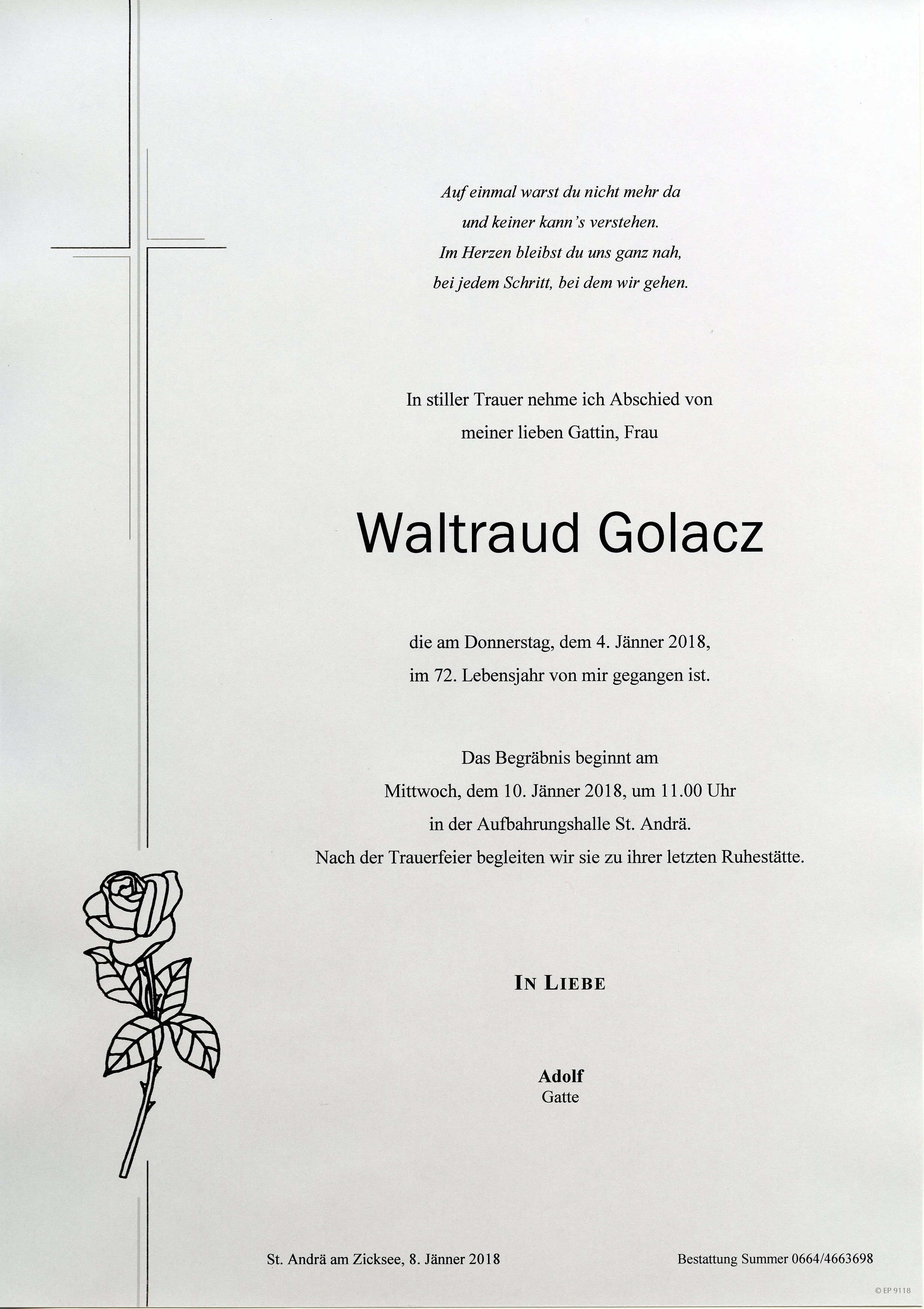 Golacz Waltraud aus 7161 St. Andrä am Zicksee, gestorben am 4. Jänner 2018