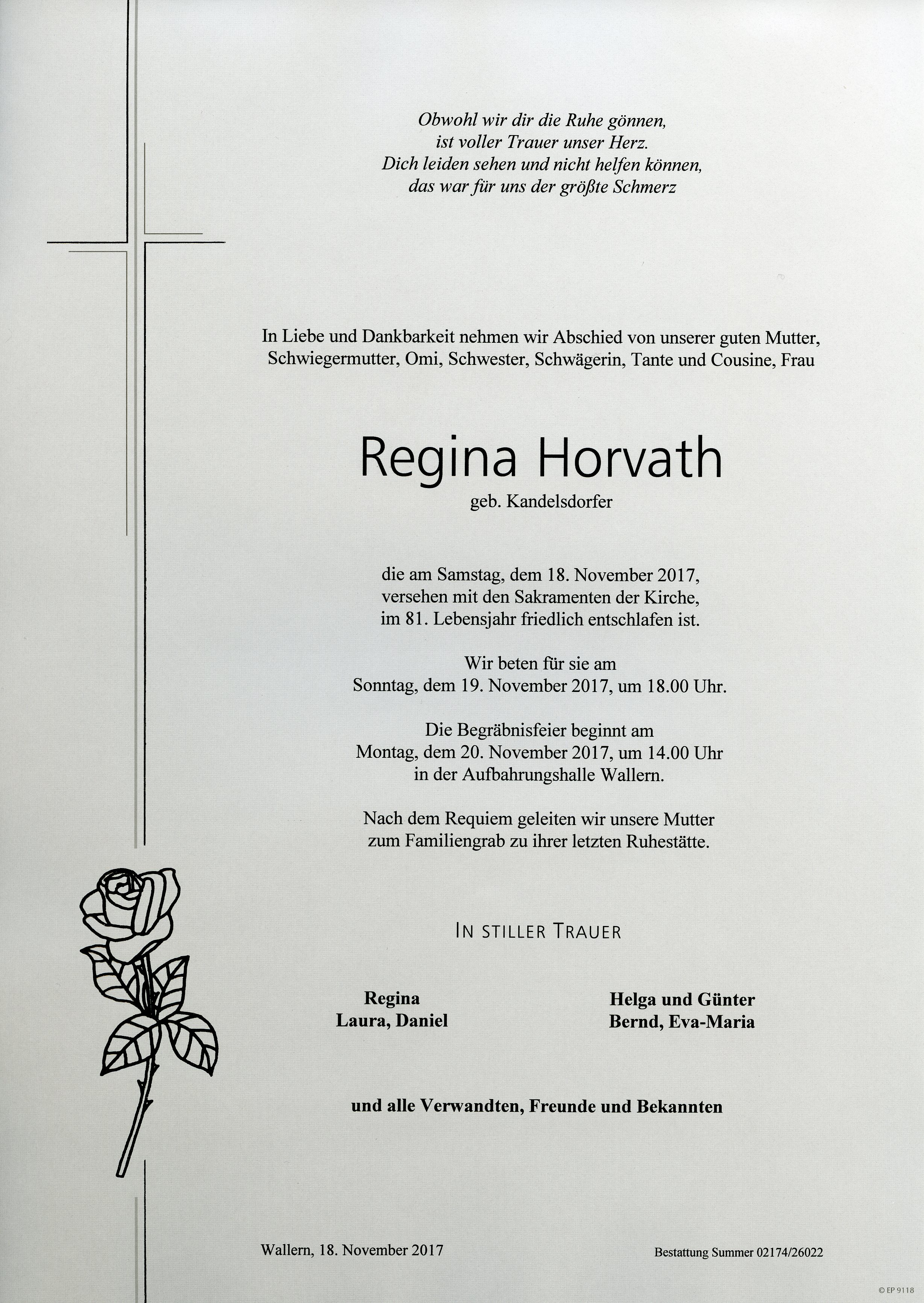 Horvath Regina aus 7151 Wallern, gestorben am 18. November 2017