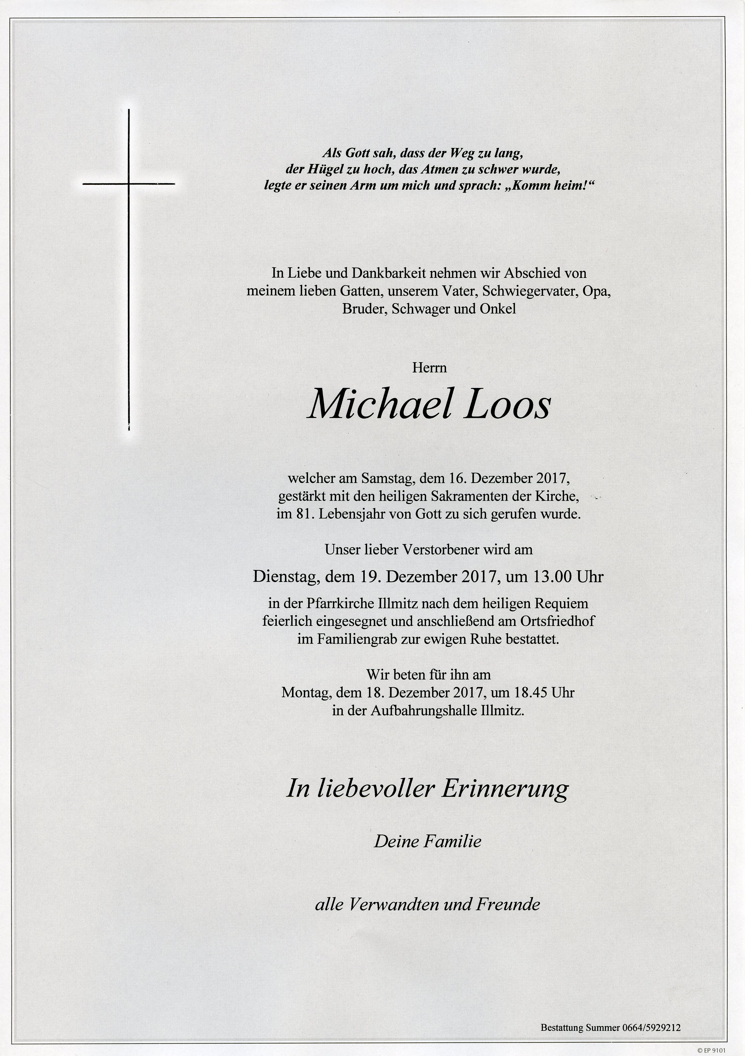 Loos Michael aus 7142 Illmitz, gestorben am 16. Dezember 2017