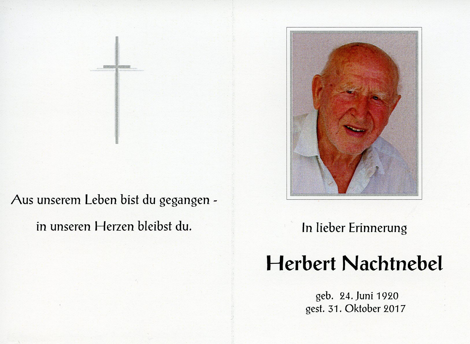 Nachtnebel Herbert aus 7142 Illmitz, gestorben am 31. Oktober 2017