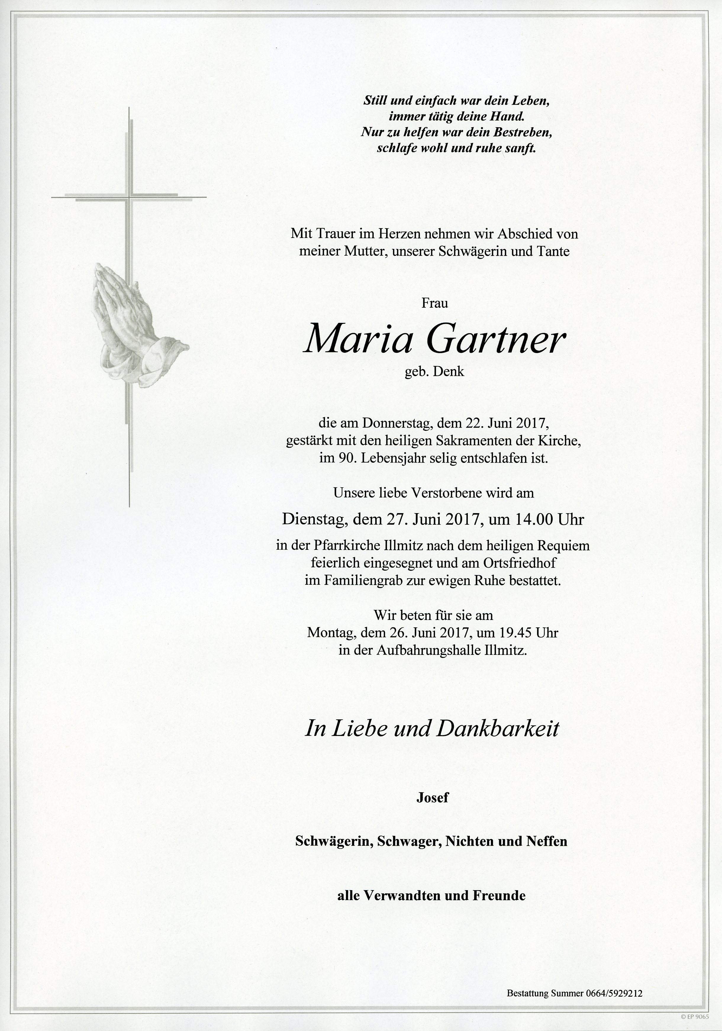 Gartner Maria aus 7142 Illmitz, gestorben am 22. Juni 2017