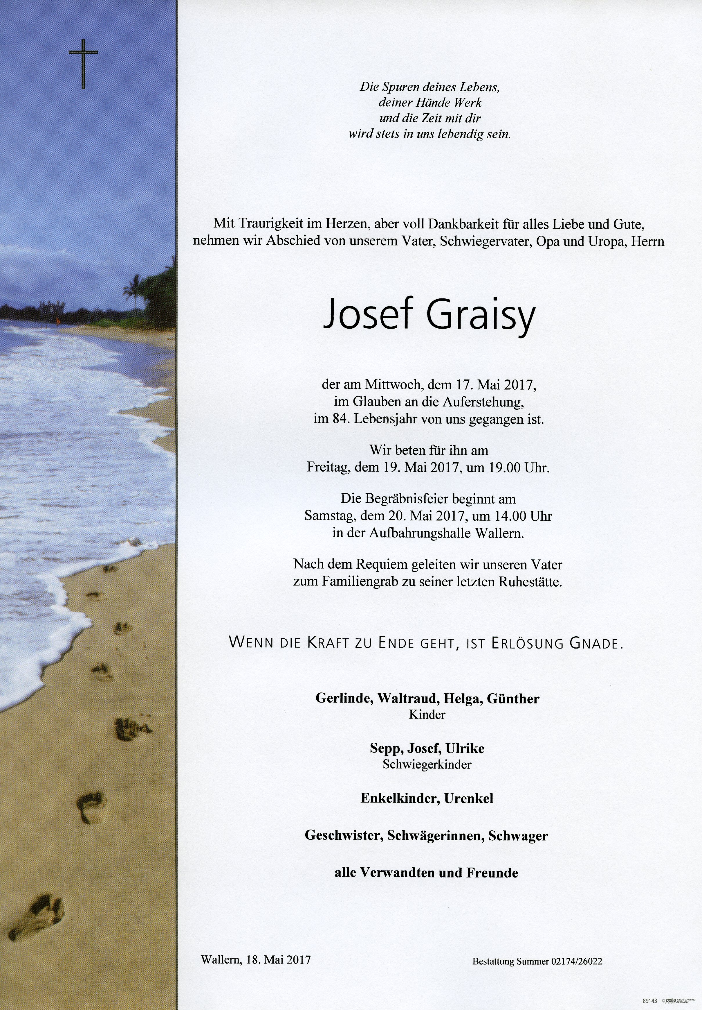 Graisy Josef aus 1050 Wien, gestorben am 17. Mai 2017