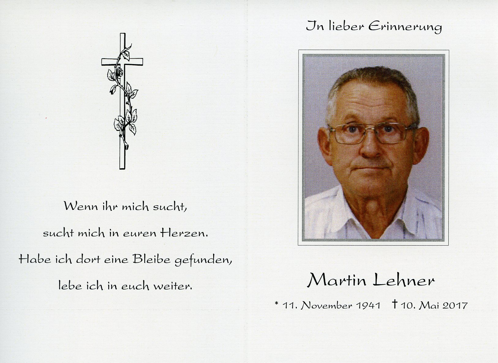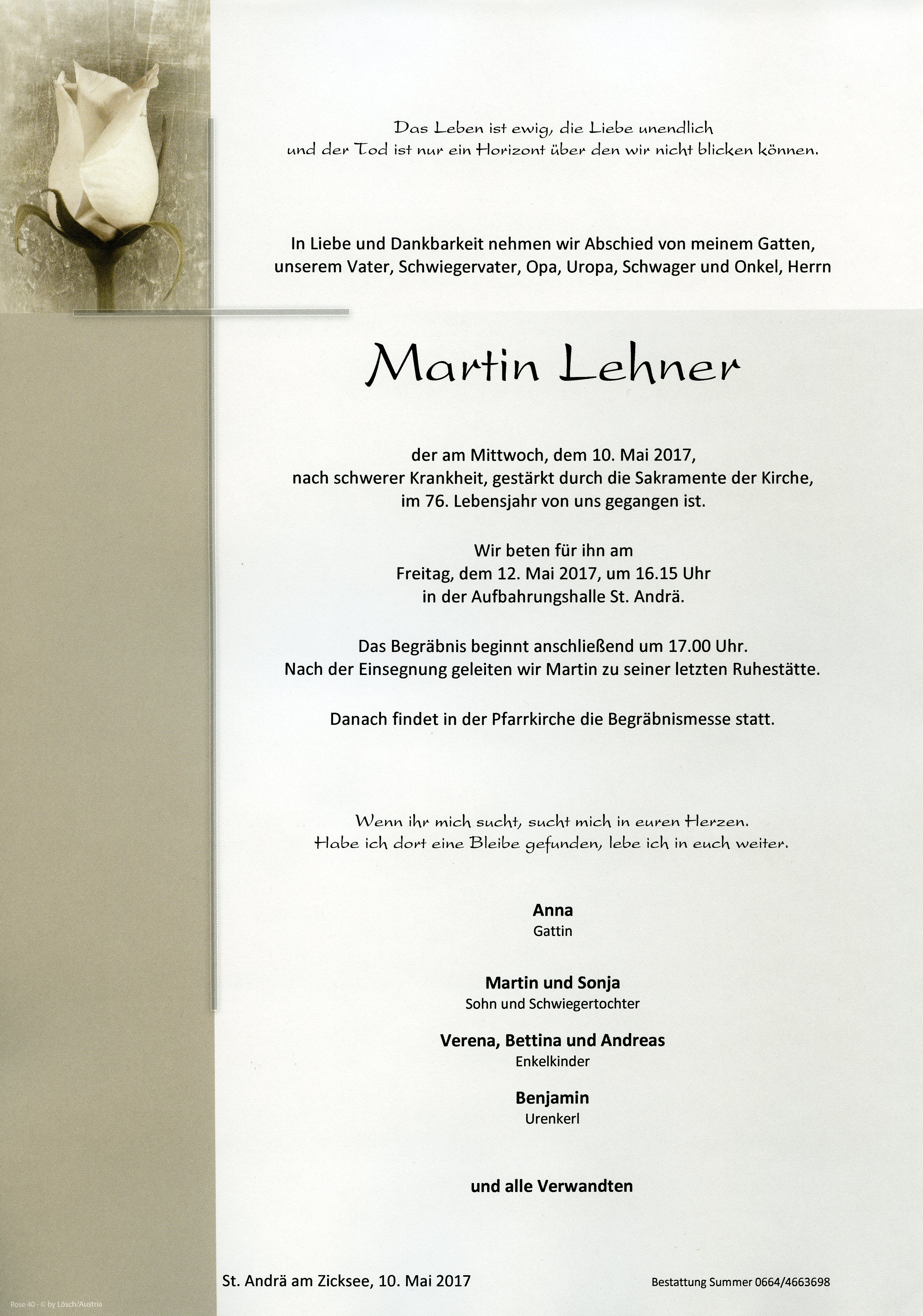 Lehner Martin aus 7161 St. Andrä am Zicksee, gestorben am 10. Mai 2017