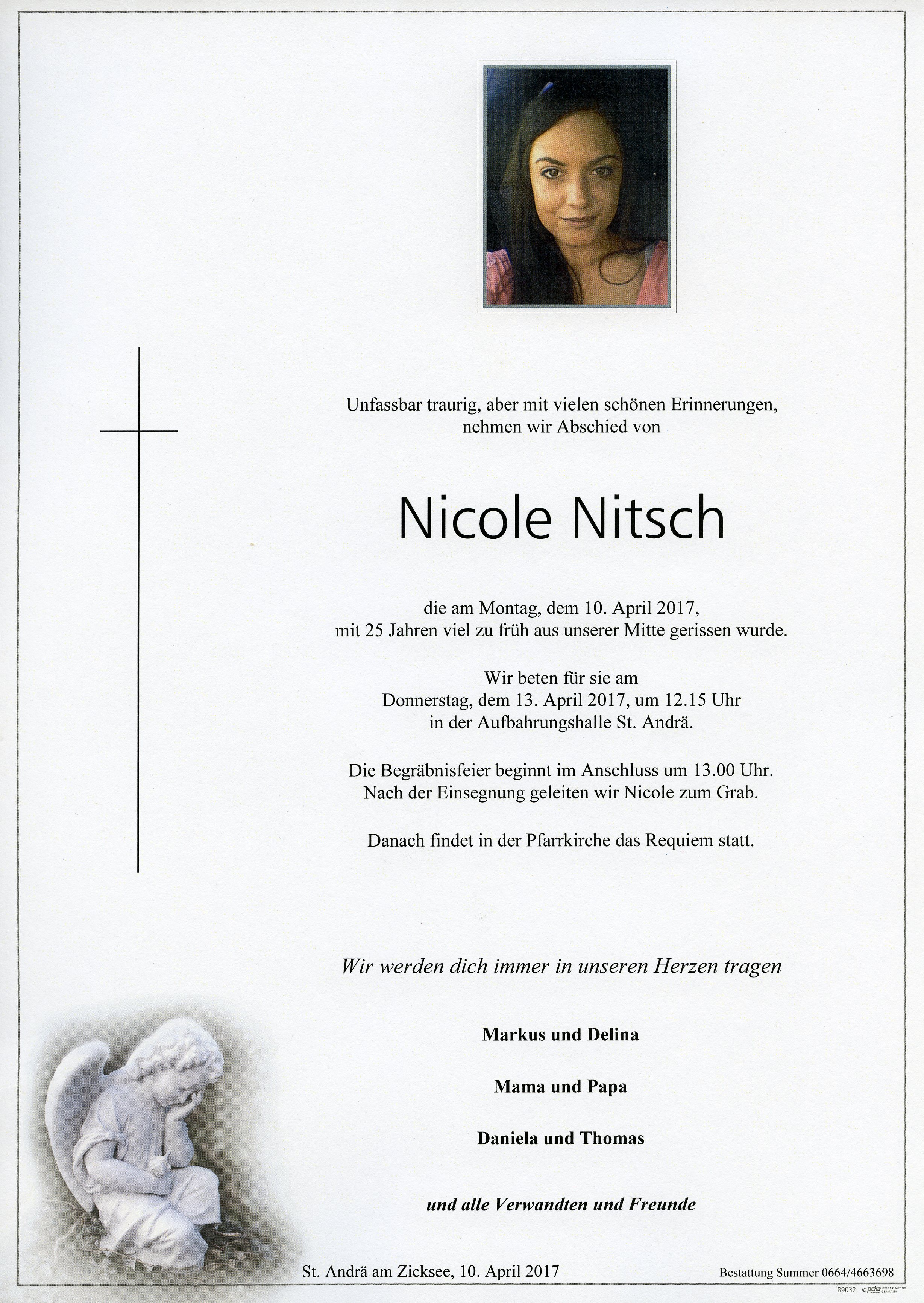 Nitsch Nicole aus 7161 St. Andrä am zicksee , gestorben am 10. April 2017