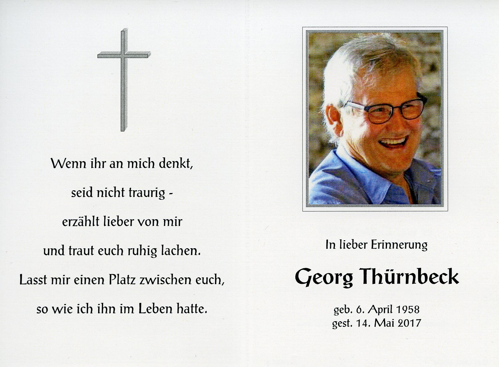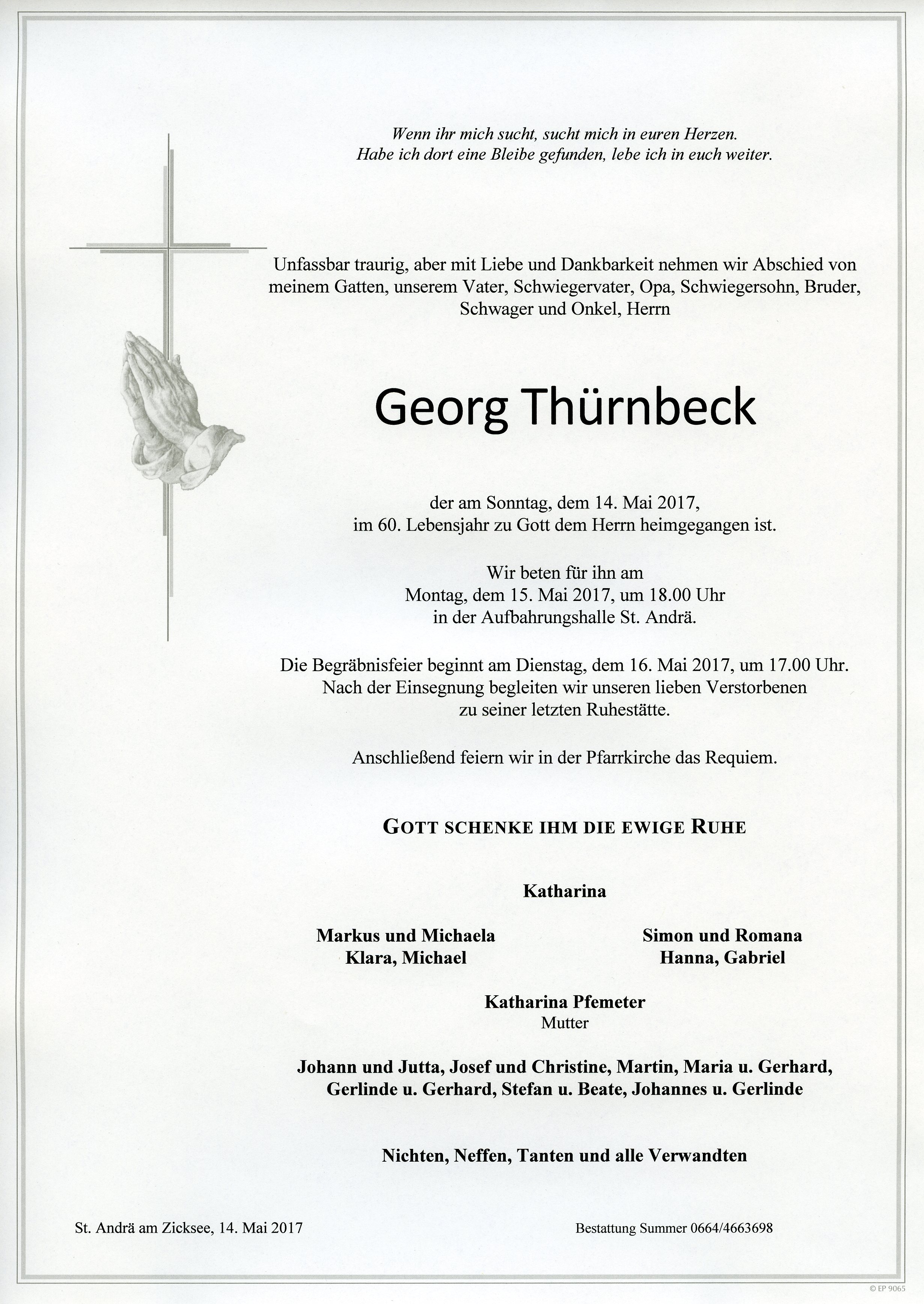 Thürnbeck Georg aus 7161 St. Andrä am Zicksee, gestorben am 14. Mai 2017