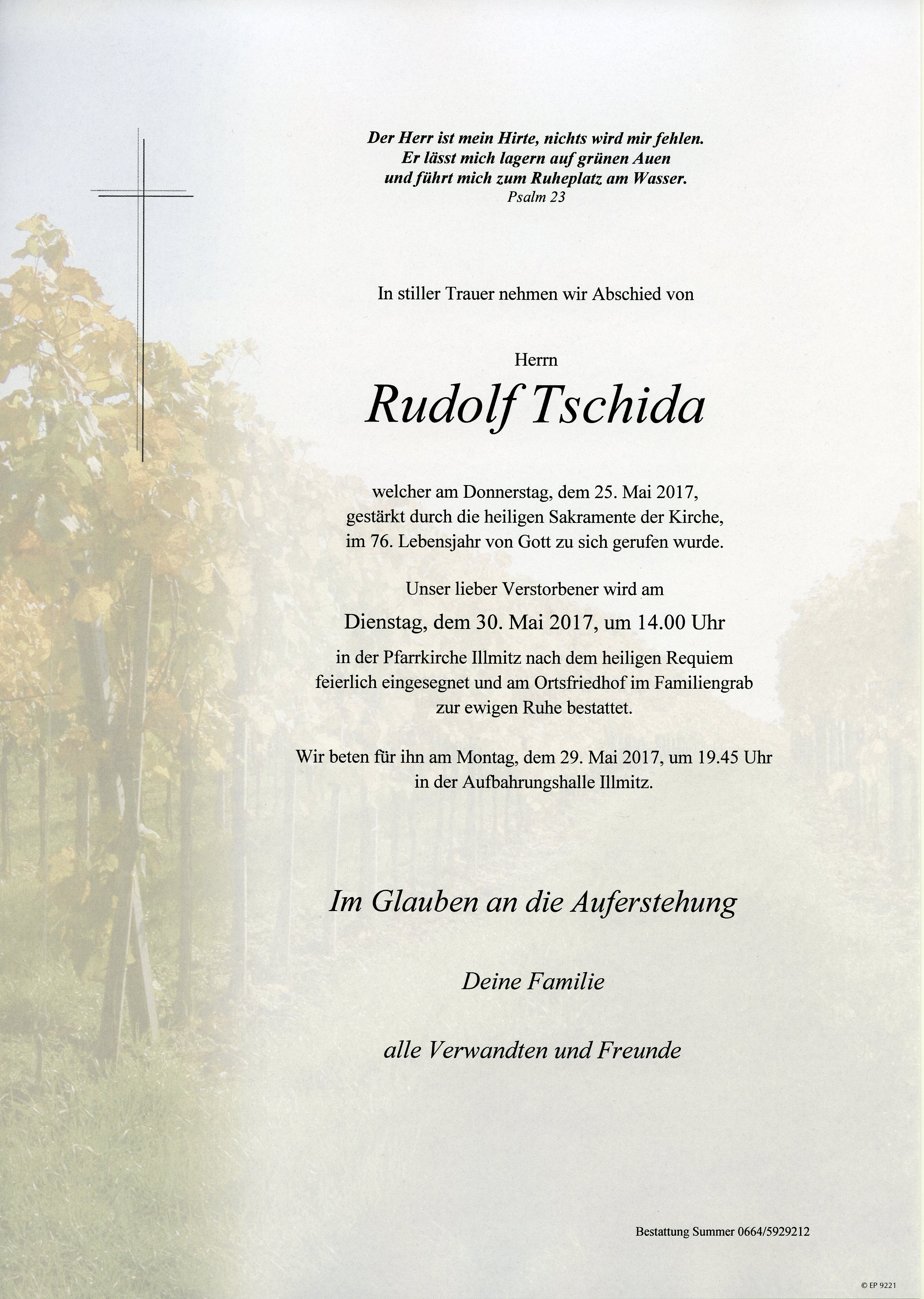 Tschida Rudolf aus 7142 Illmitz, gestorben am 25. Mai 2017