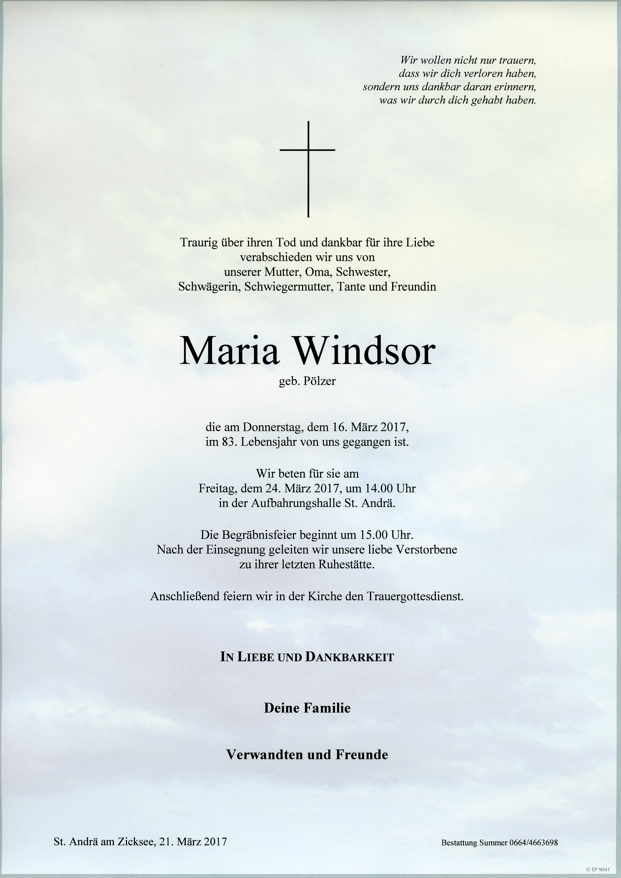 Windsor Maria aus 7161 St. Andrä am Zicksee, gestorben am 16. März 2017