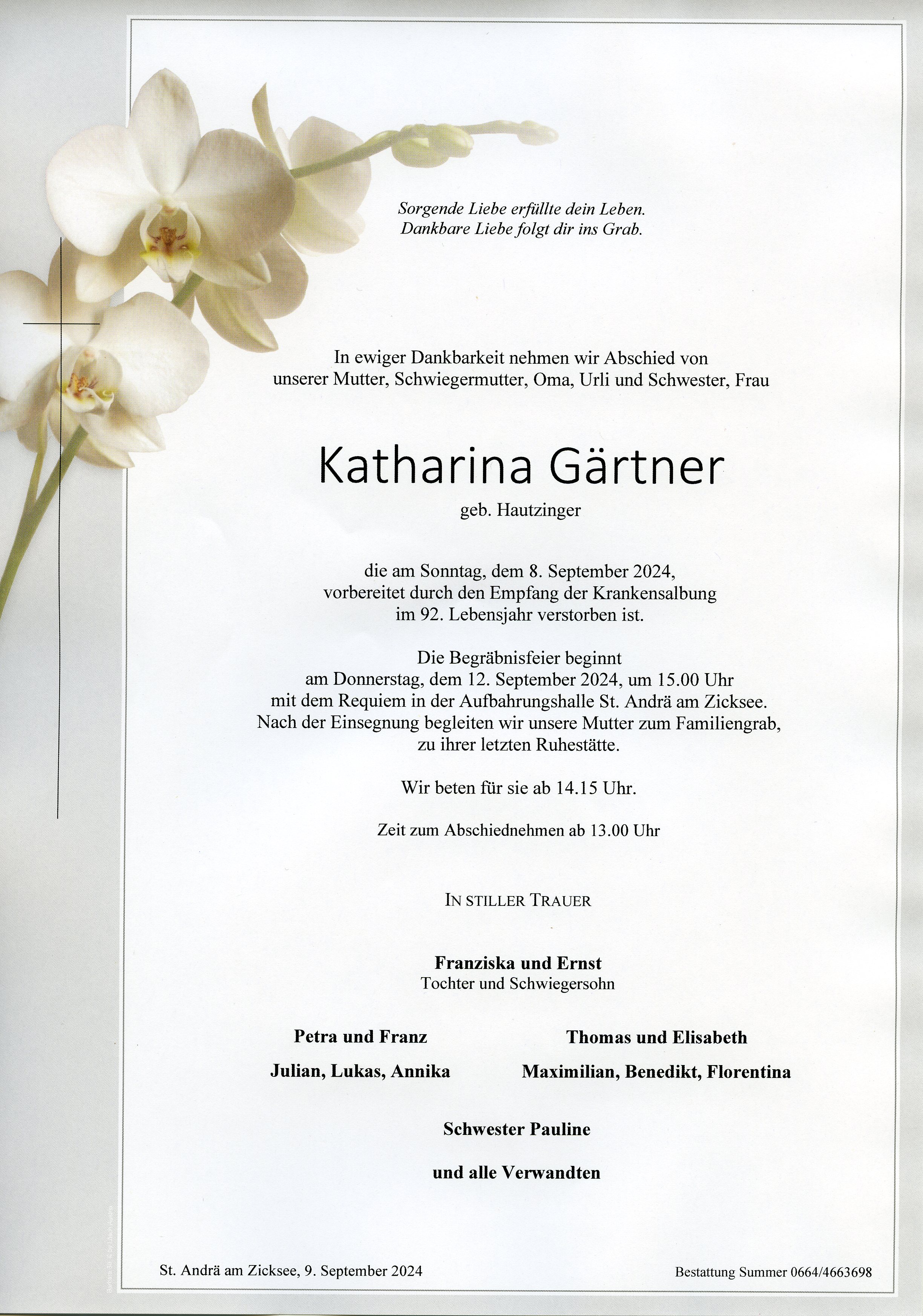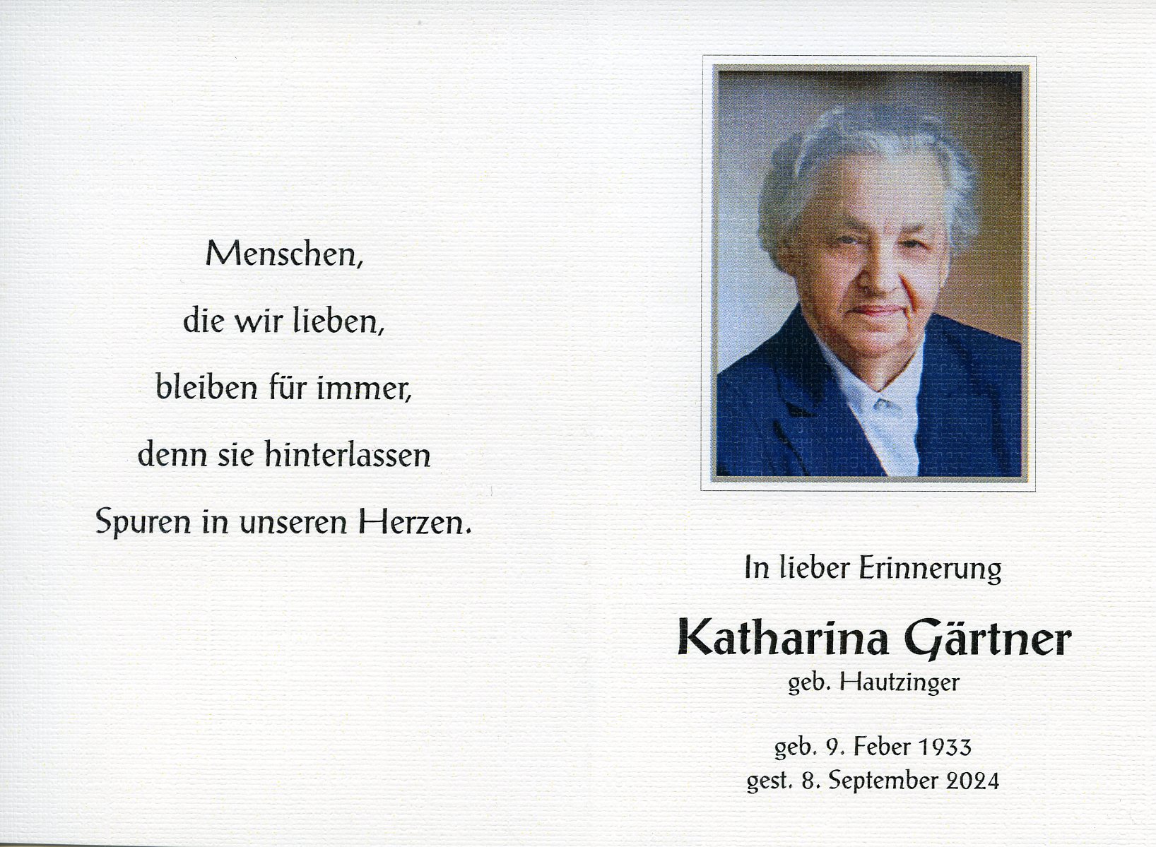 Gärtner Katharina aus 7161 St. Andrä am Zicksee, gestorben am 8. September 2024