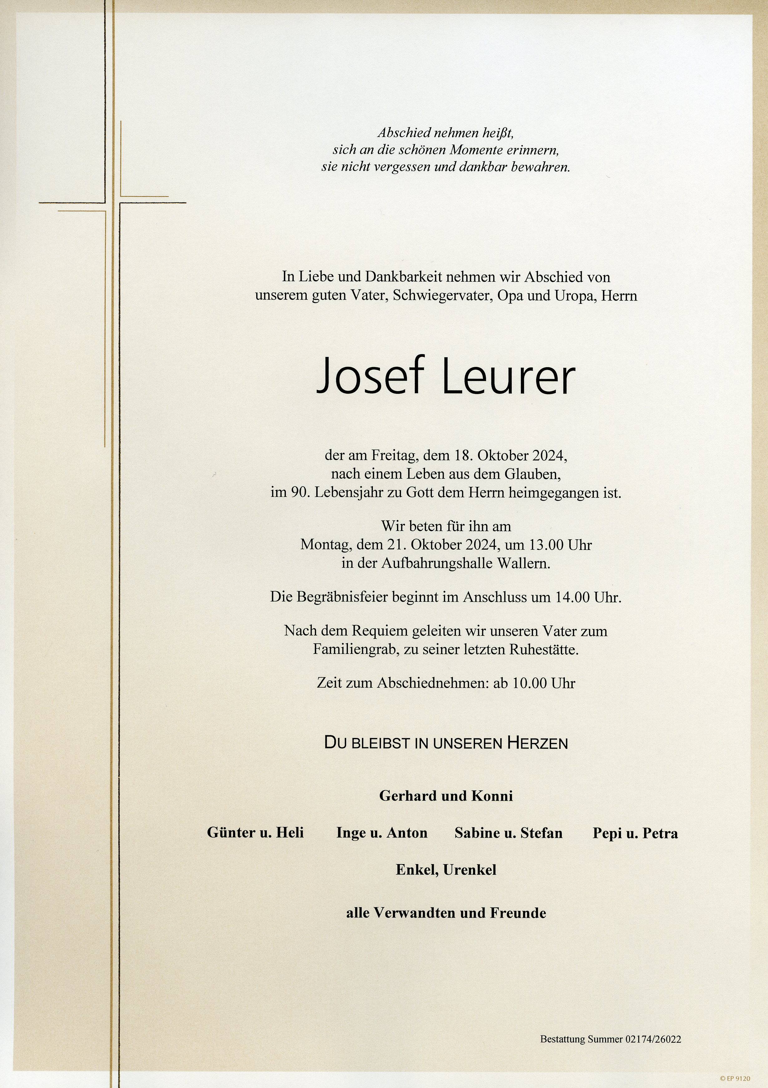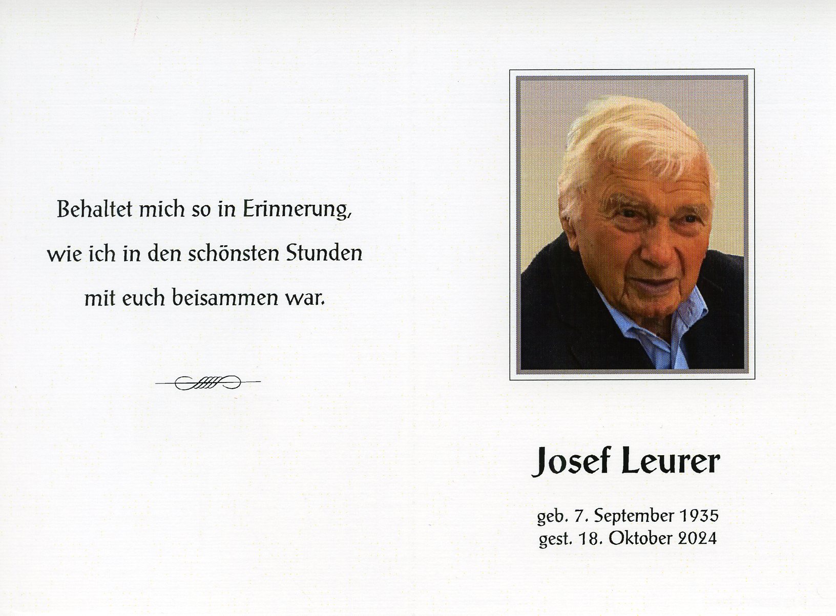 Leurer Josef aus 7151 Wallern, gestorben am 18. Oktober 2024