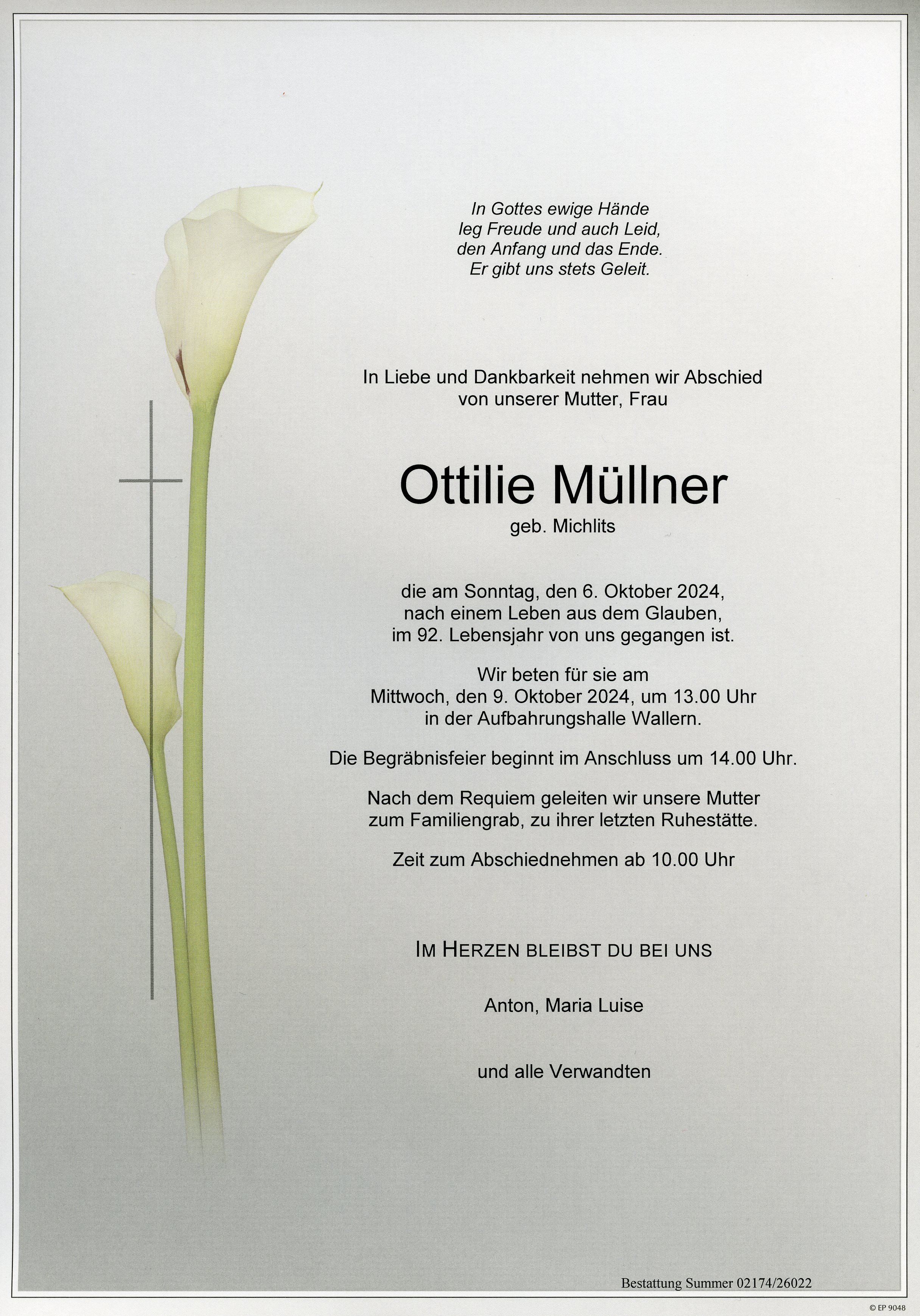Müllner Ottilie aus 7151 Wallern, gestorben am 6. Oktober 2024