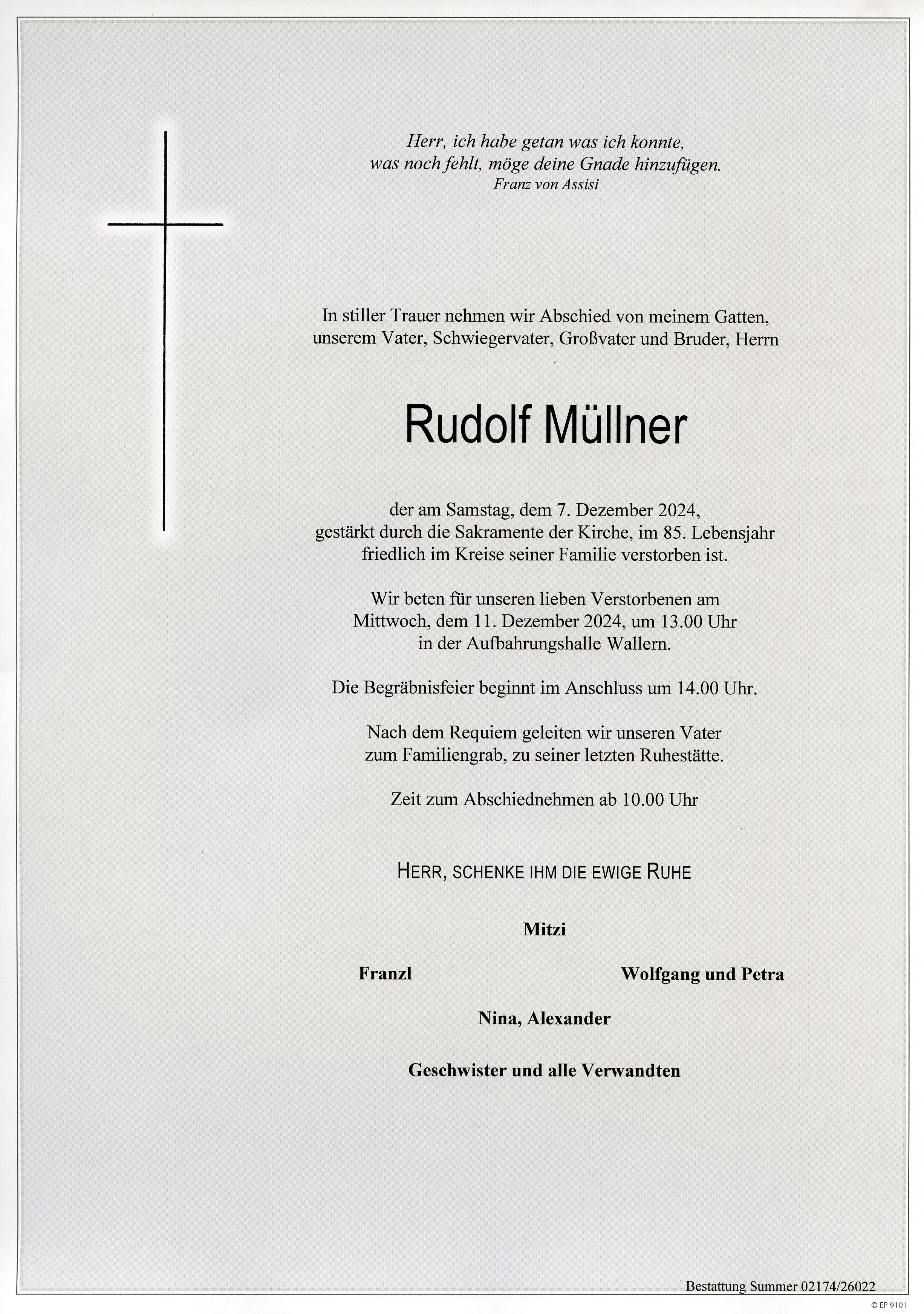 Müllner Rudolf aus 7151 Wallern, gestorben am 7. Dezember 2024