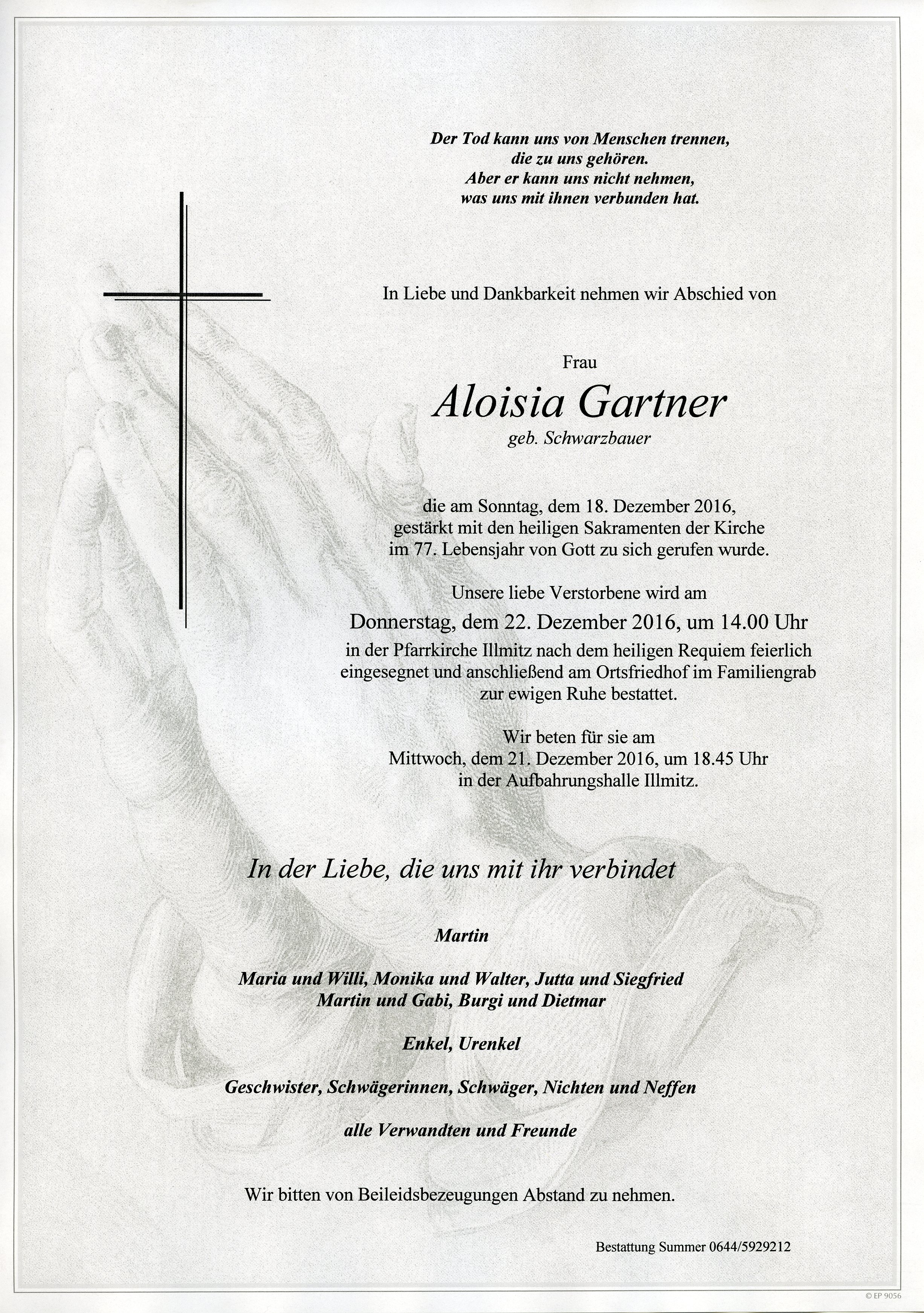 Gartner Aloisia aus 7142 Illmitz, gestorben am 18. Dezember 201^6