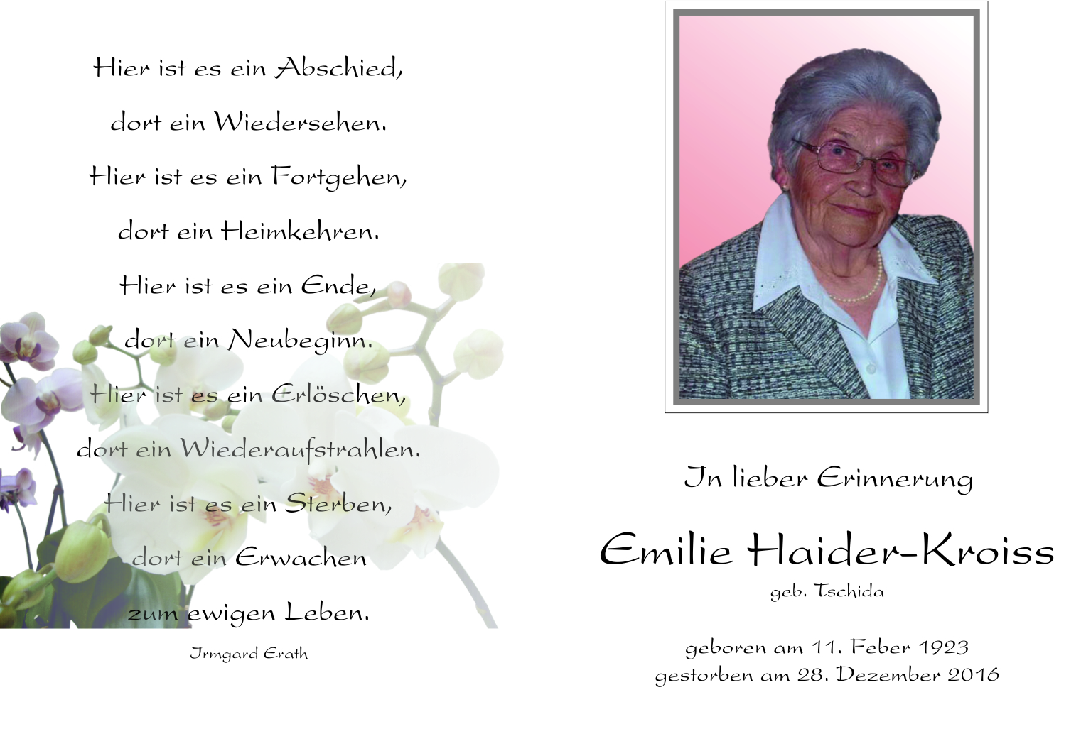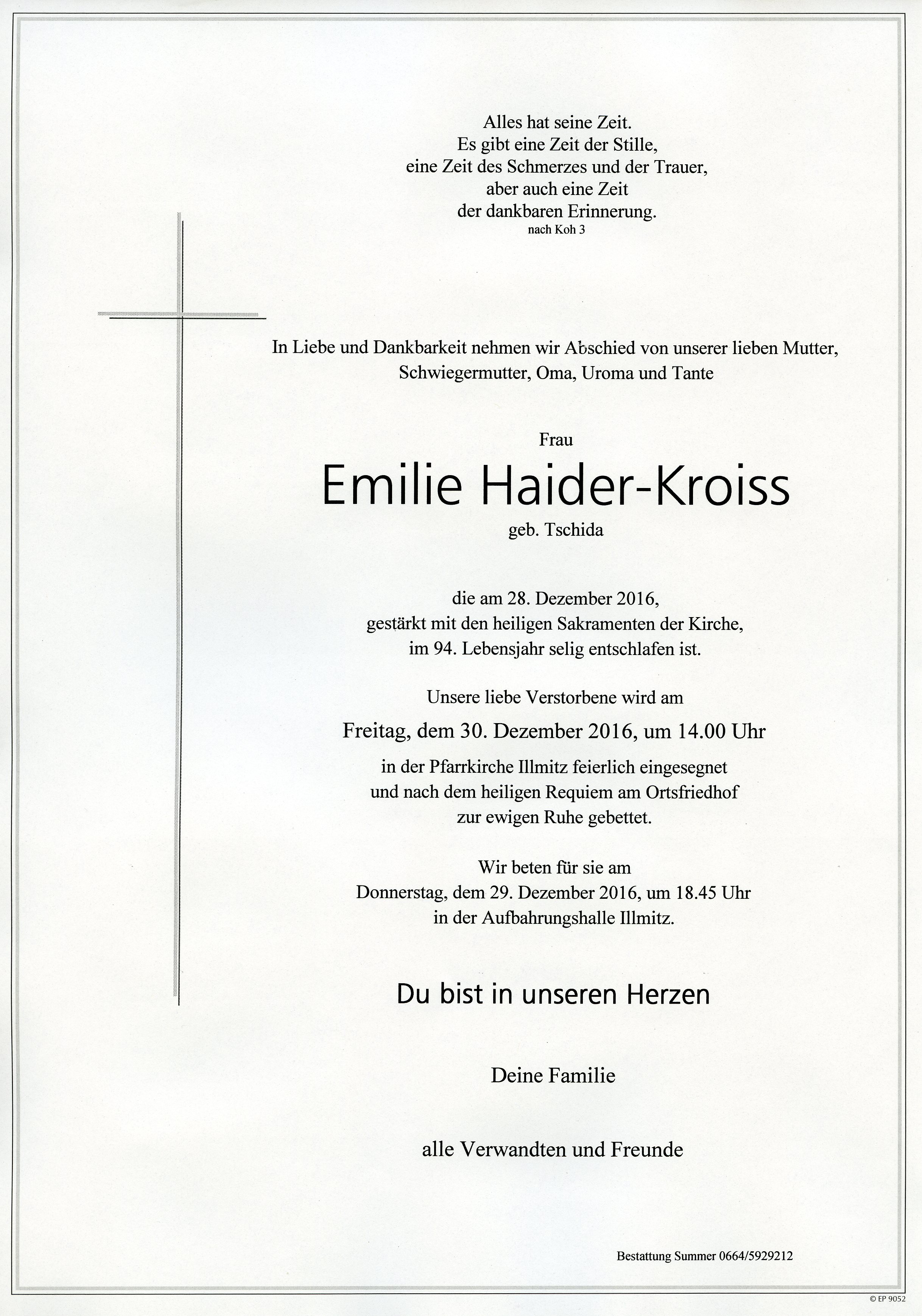 Haider-Kroiss Emilie aus 7142 Illmitz, gestorben am 28. Dezember 2016