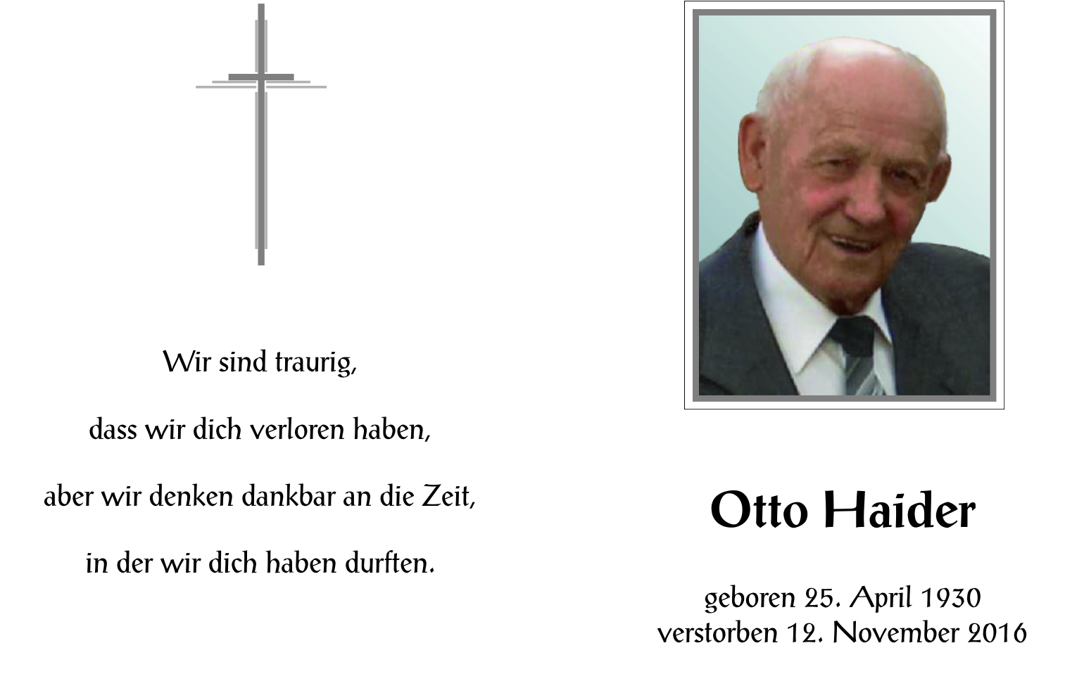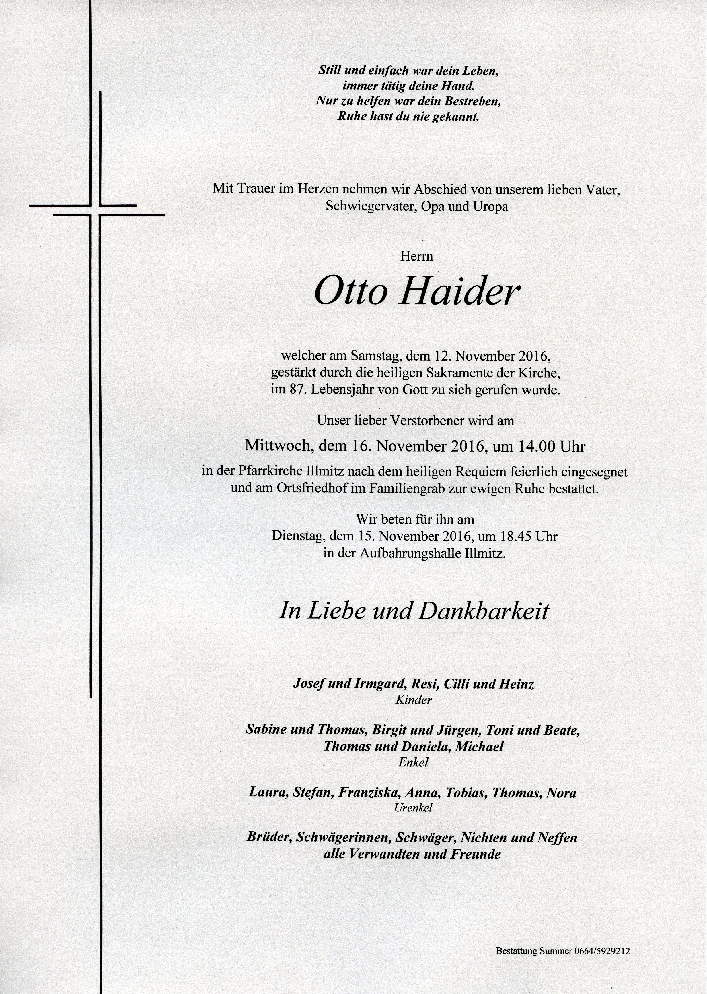 Haider Otto aus 7142 Illmitz, gestorben am 12. November 2016