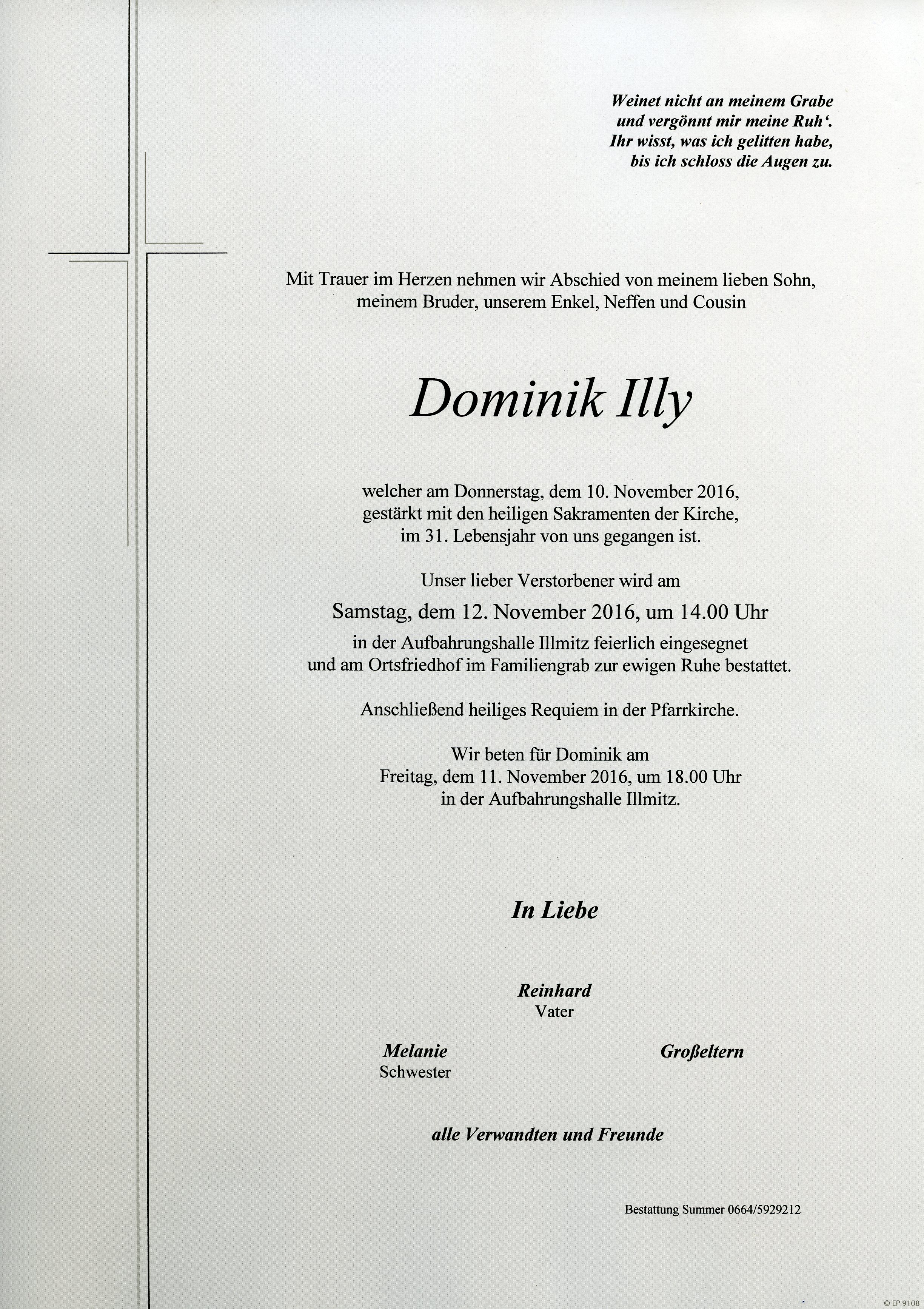 Illy Dominik aus 7142 Illmitz, gestorben am 10. November 2016
