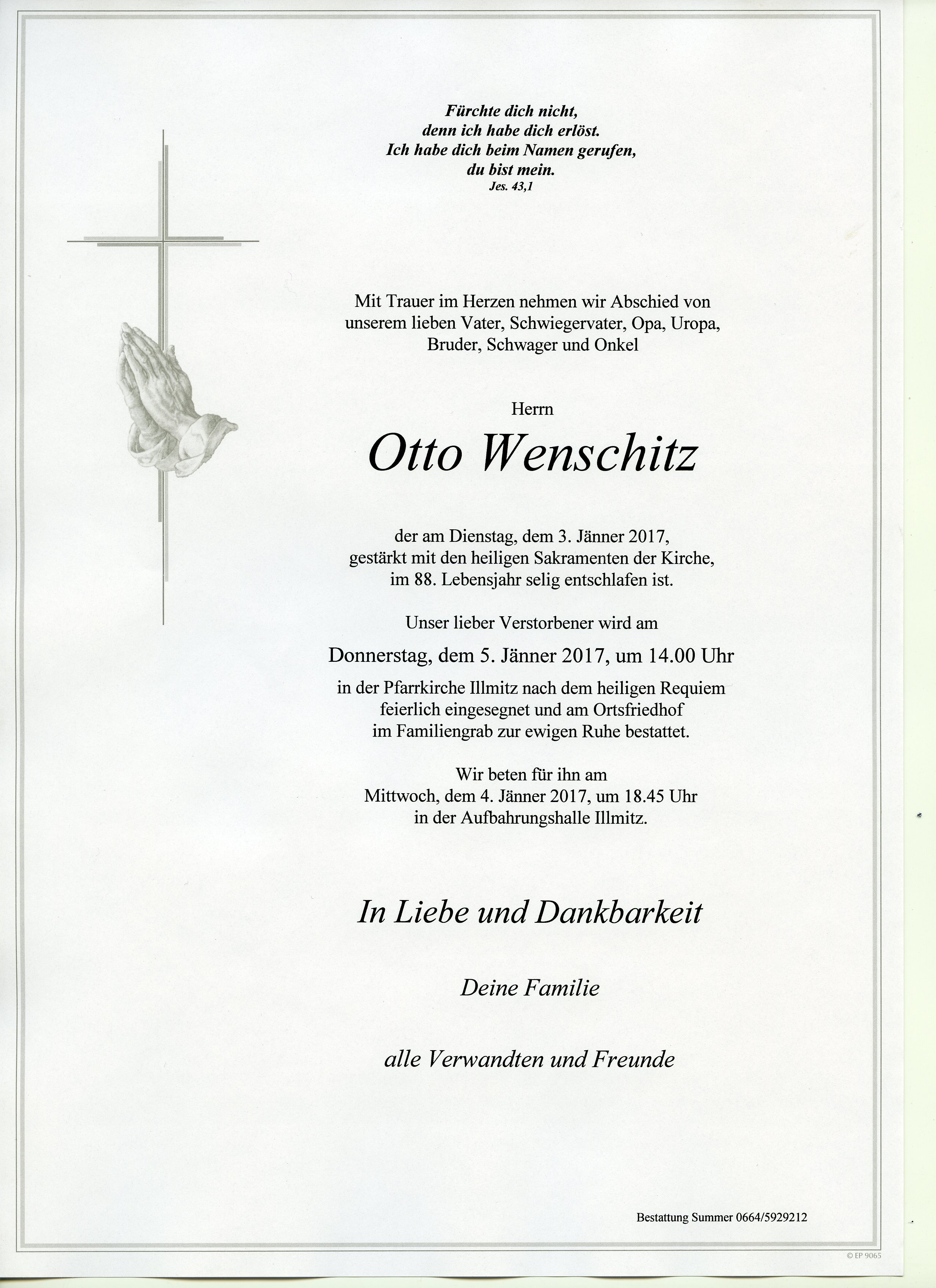 Wenschitz Otto aus 7142 Illmitz, gestorben am 3. Jänner 2017
