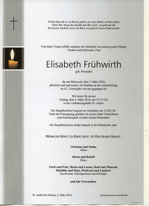 Frühwirth Elisabeth aus 7161 St. Andrä am Zicksee, gestorben am 2. März 2016