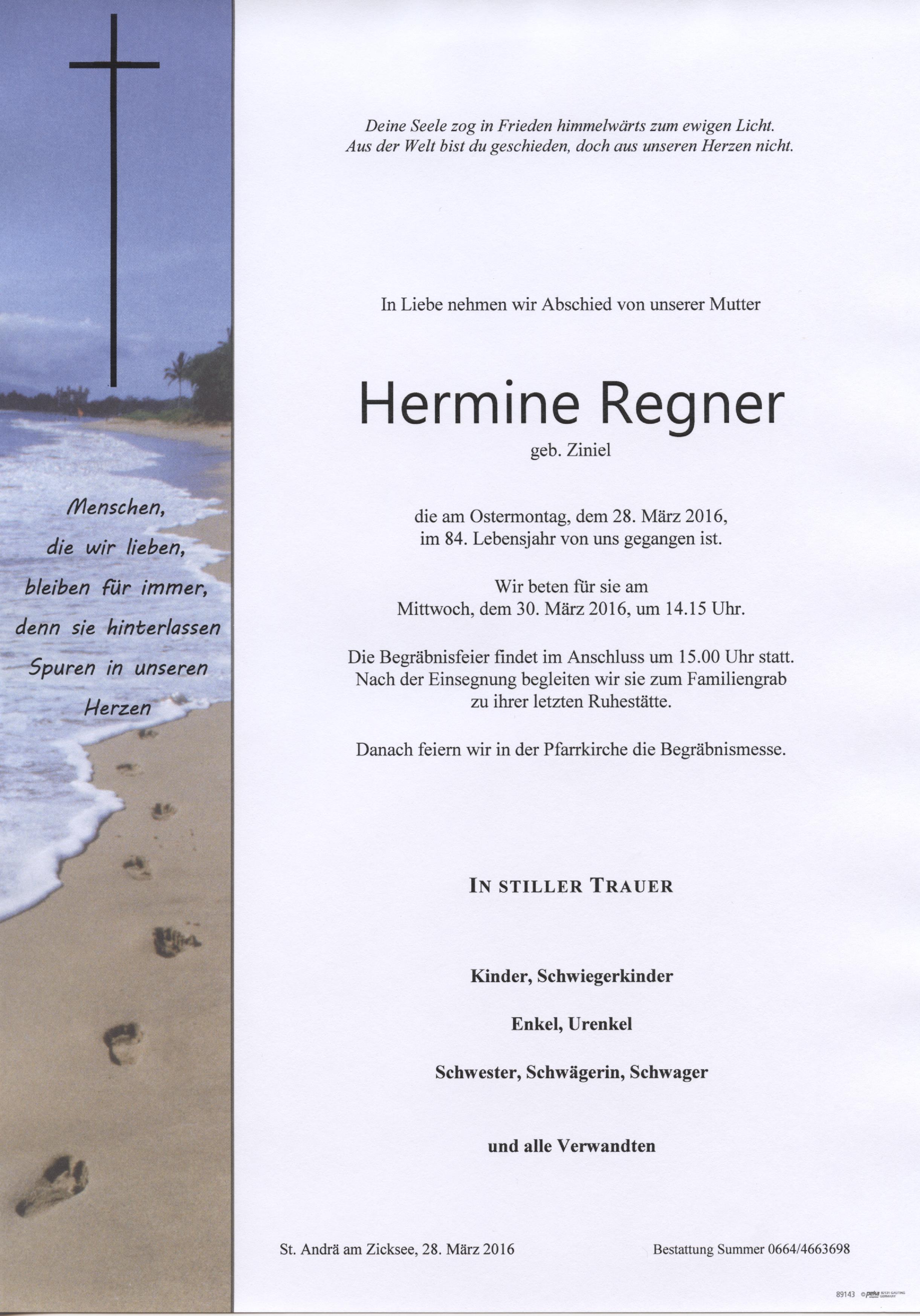 Regner Hermine aus 7161 St. Andrä am Ziocksee, gestorben am 28. März 2016