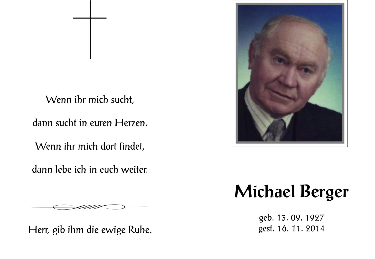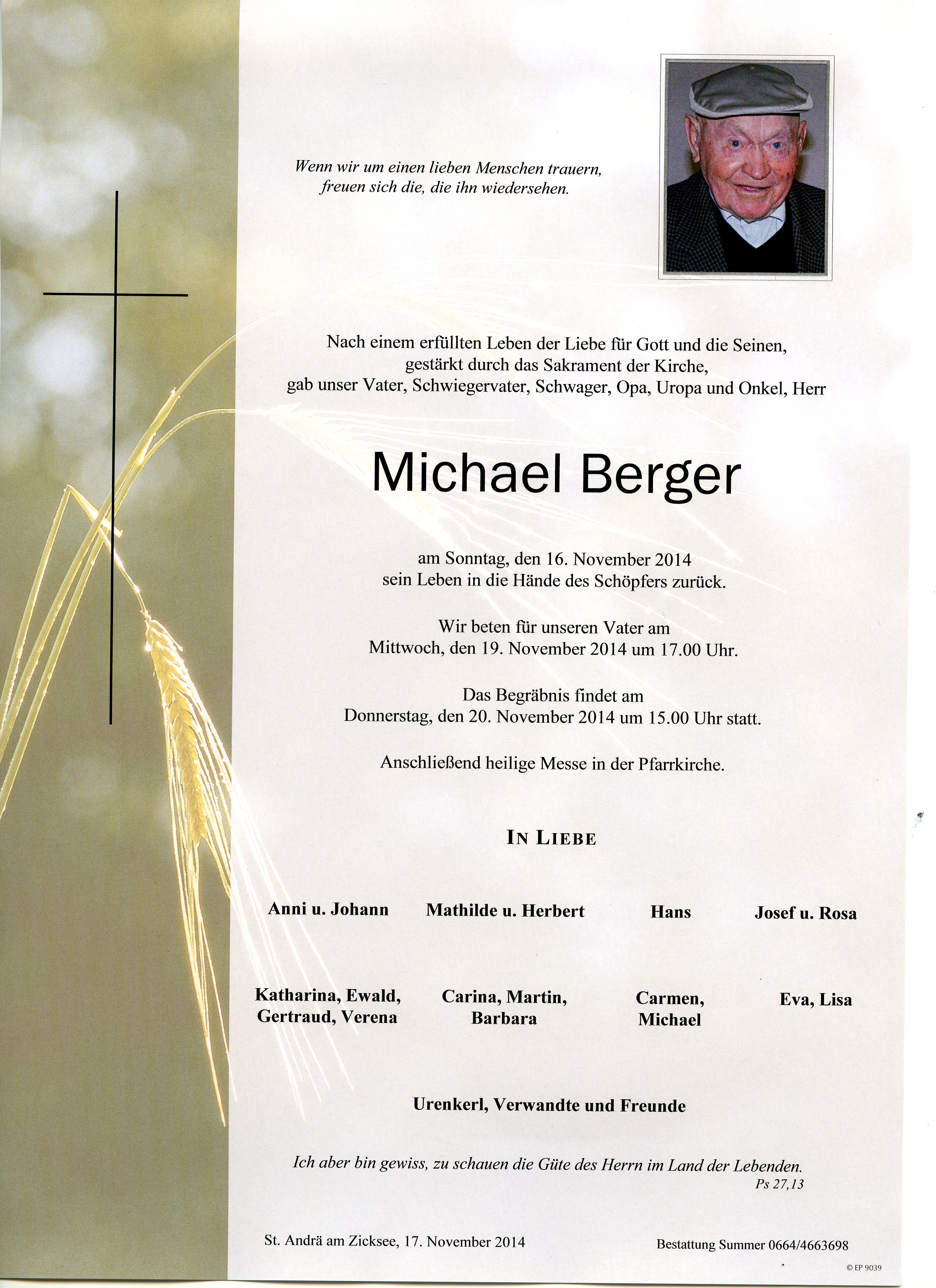 Berger Michael aus 7161 St. Andrä, gestorben am 16. November 2014