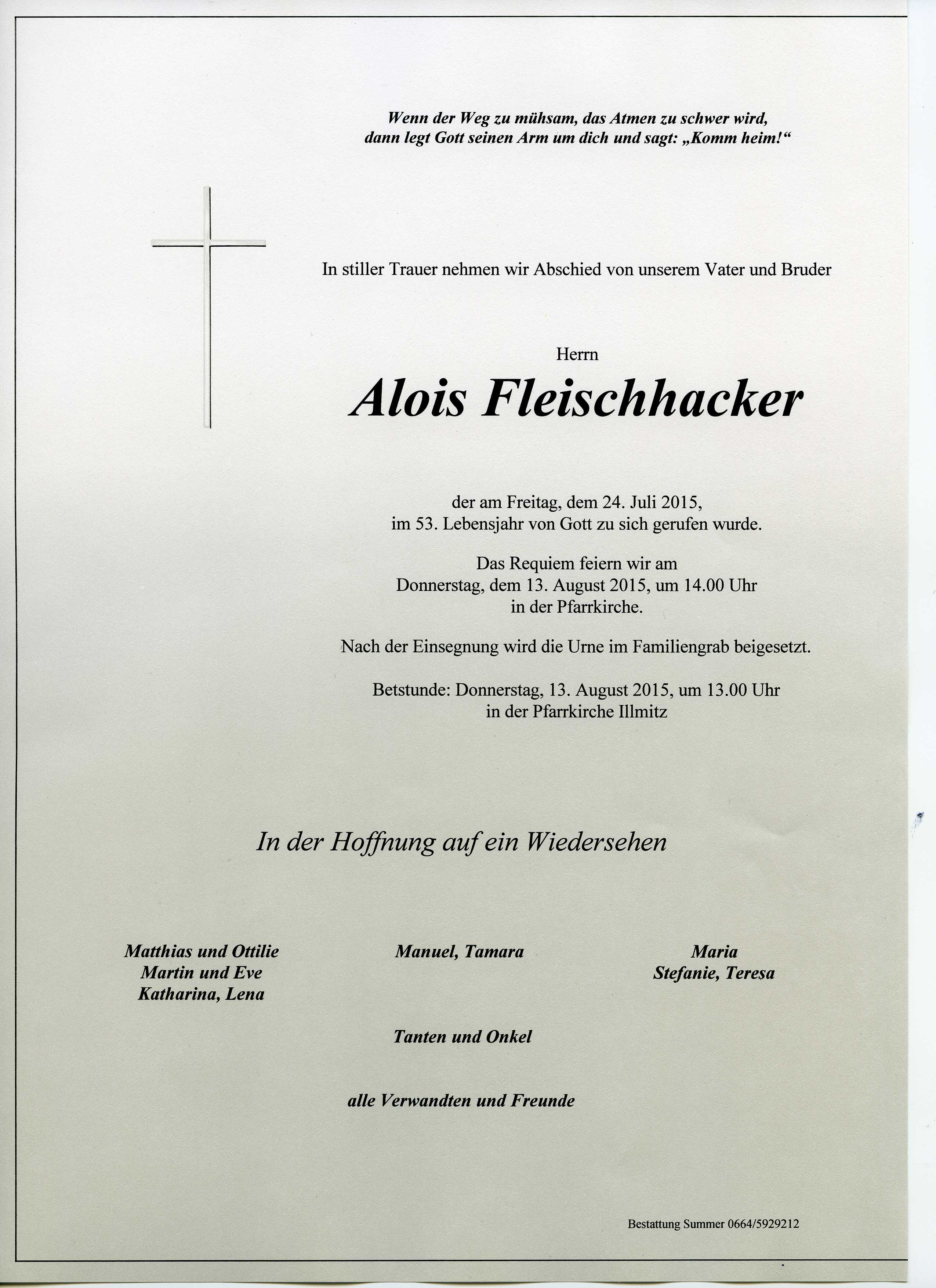 Fleischhacker Alois aus 7142 Illmitz, gestorben am 24. Juli 2015