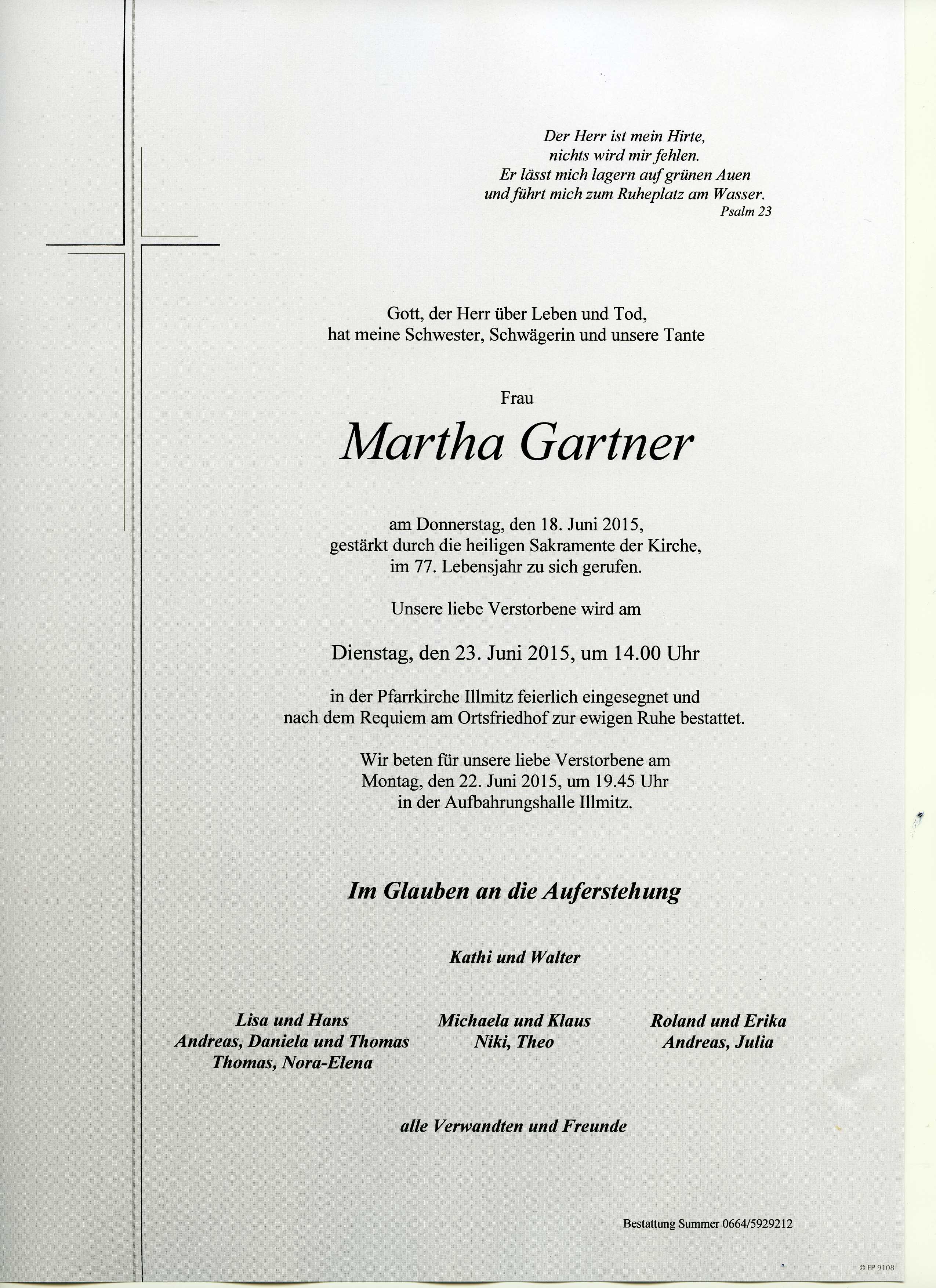 Gartner Martha aus 7142 Illmitz, gestorben am 18. Juni 2015