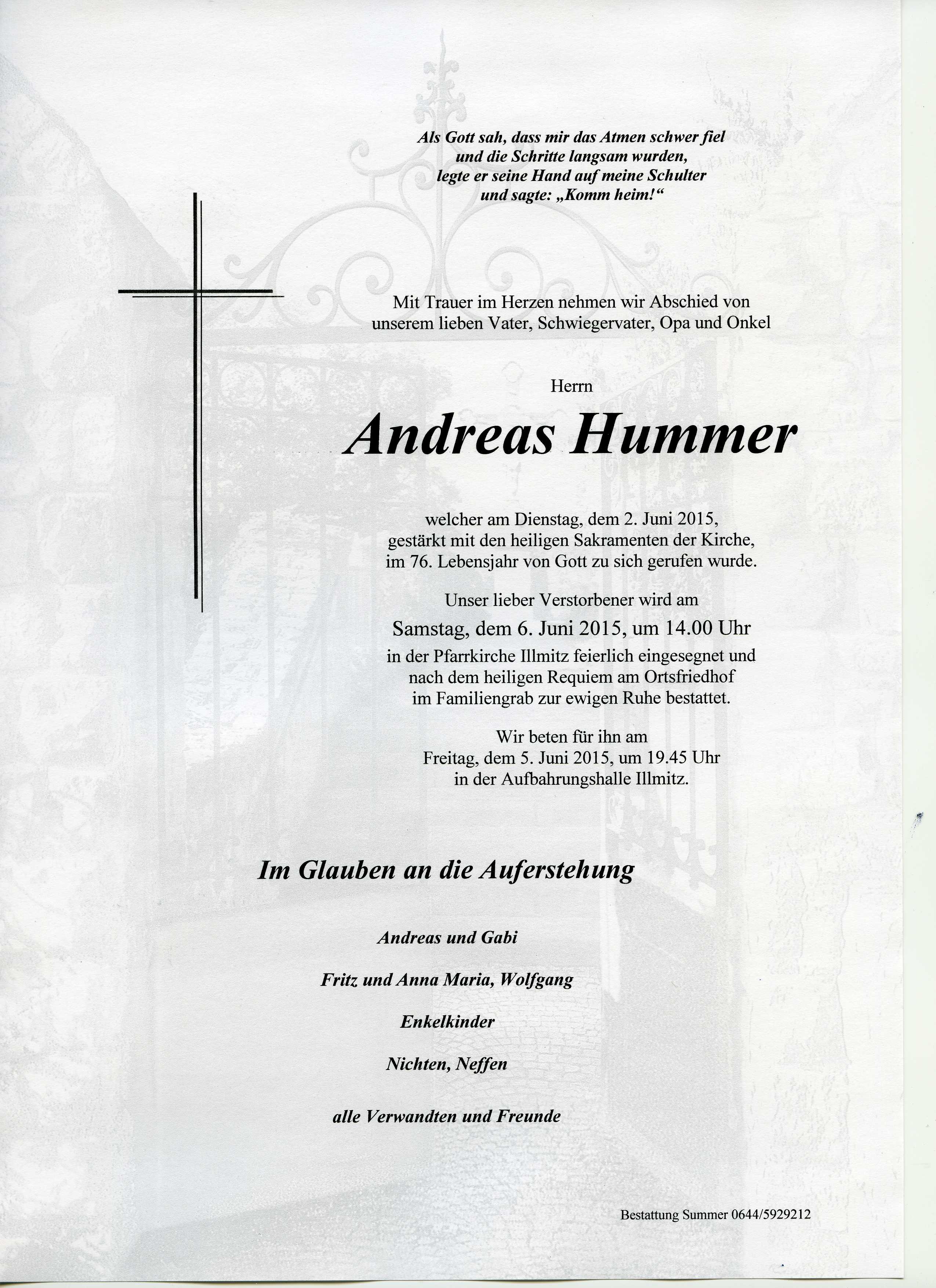 Hummer Andreas aus 7141 Illmitz, gestorben am 02.06.2015