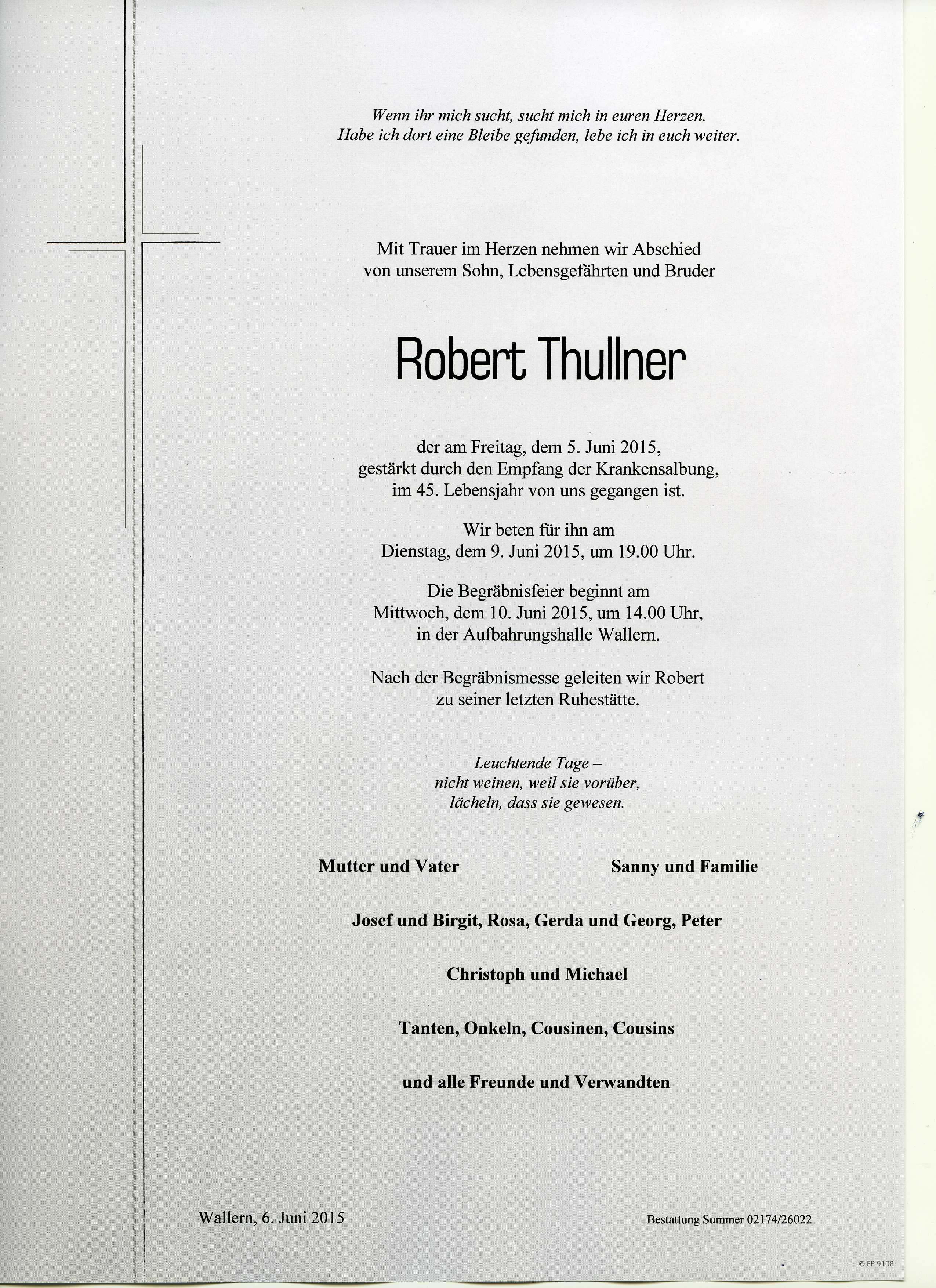 Thullner Robert aus 7151 Wallern, gestorben am 05.06.2015