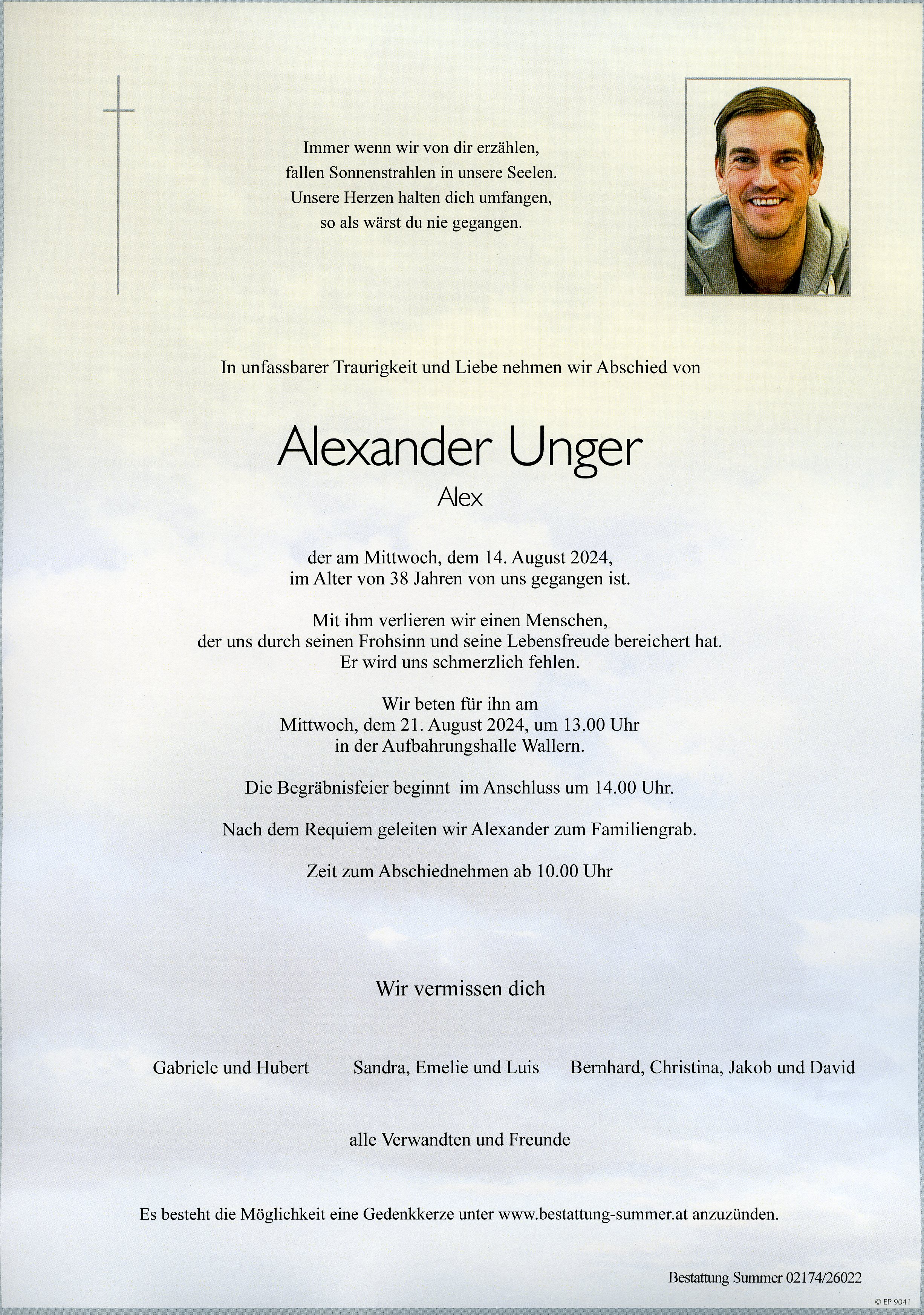Unger Alexander aus 7151 Wallern, gestorben am 14. August 2024