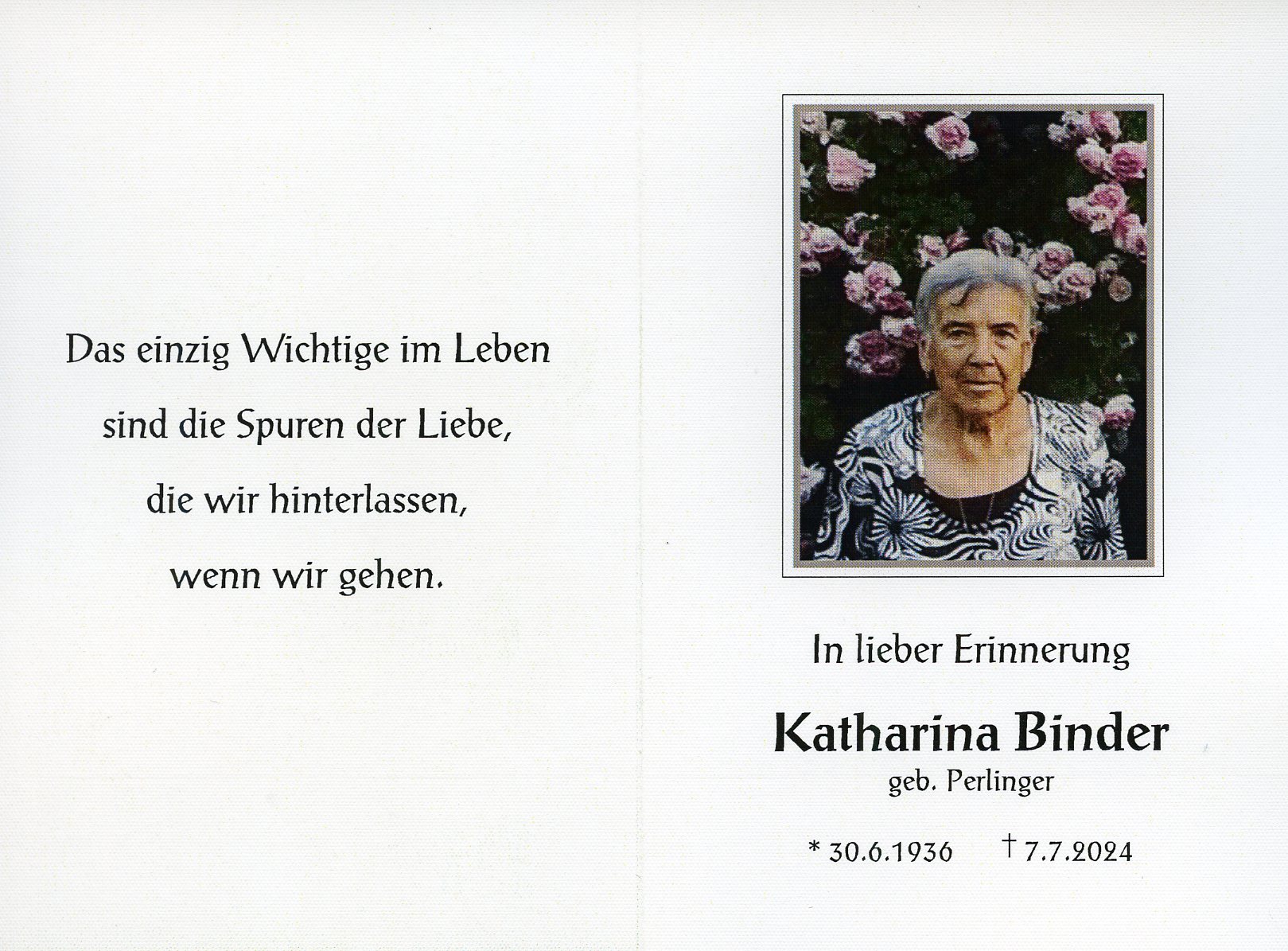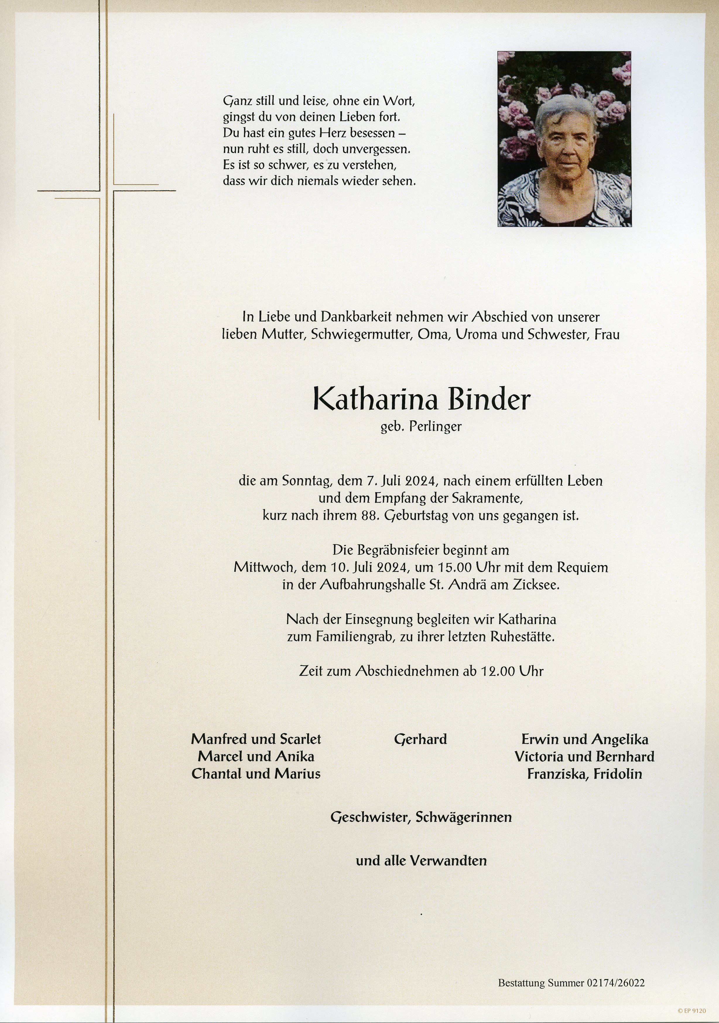 Binder Katharina aus 7161 St. Andrä am Zicksee, gestorben am 7. Juli 2024