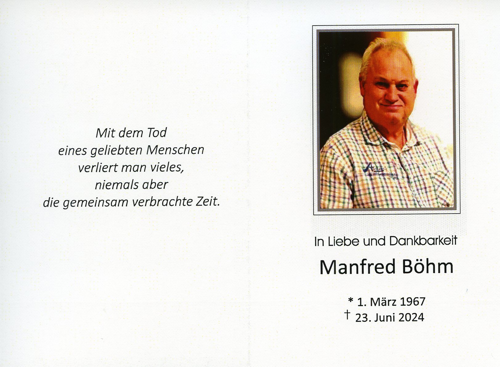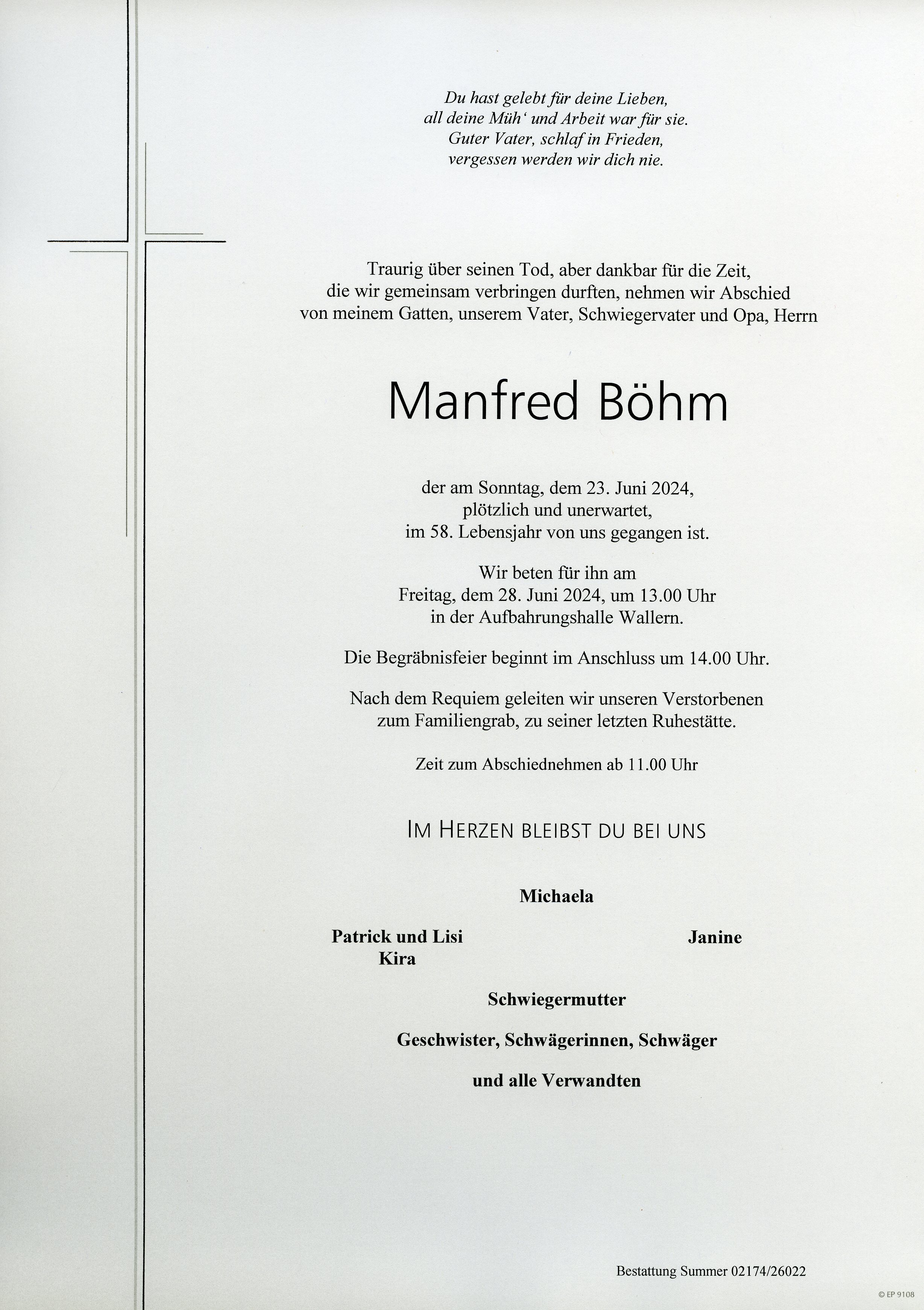 Böhm Manfred aus 7152 Pamhagen, gestorben am 23. Juni 2024