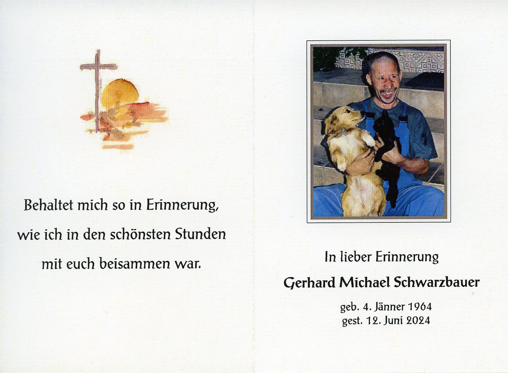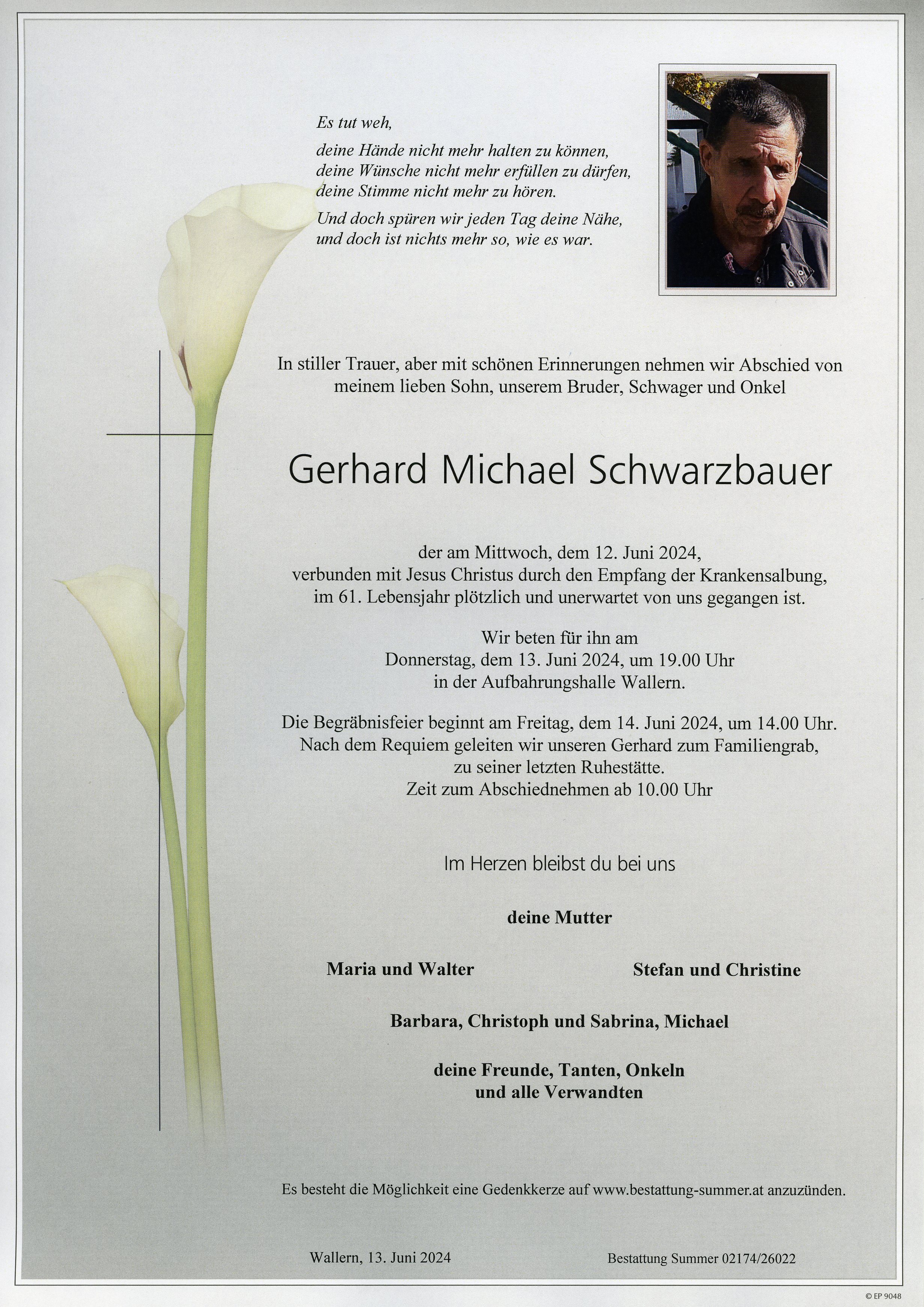 Schwarzbauer Gerhard Michael aus 7151 Wallern im Burgenland, gestorben am 12. Juni 2024