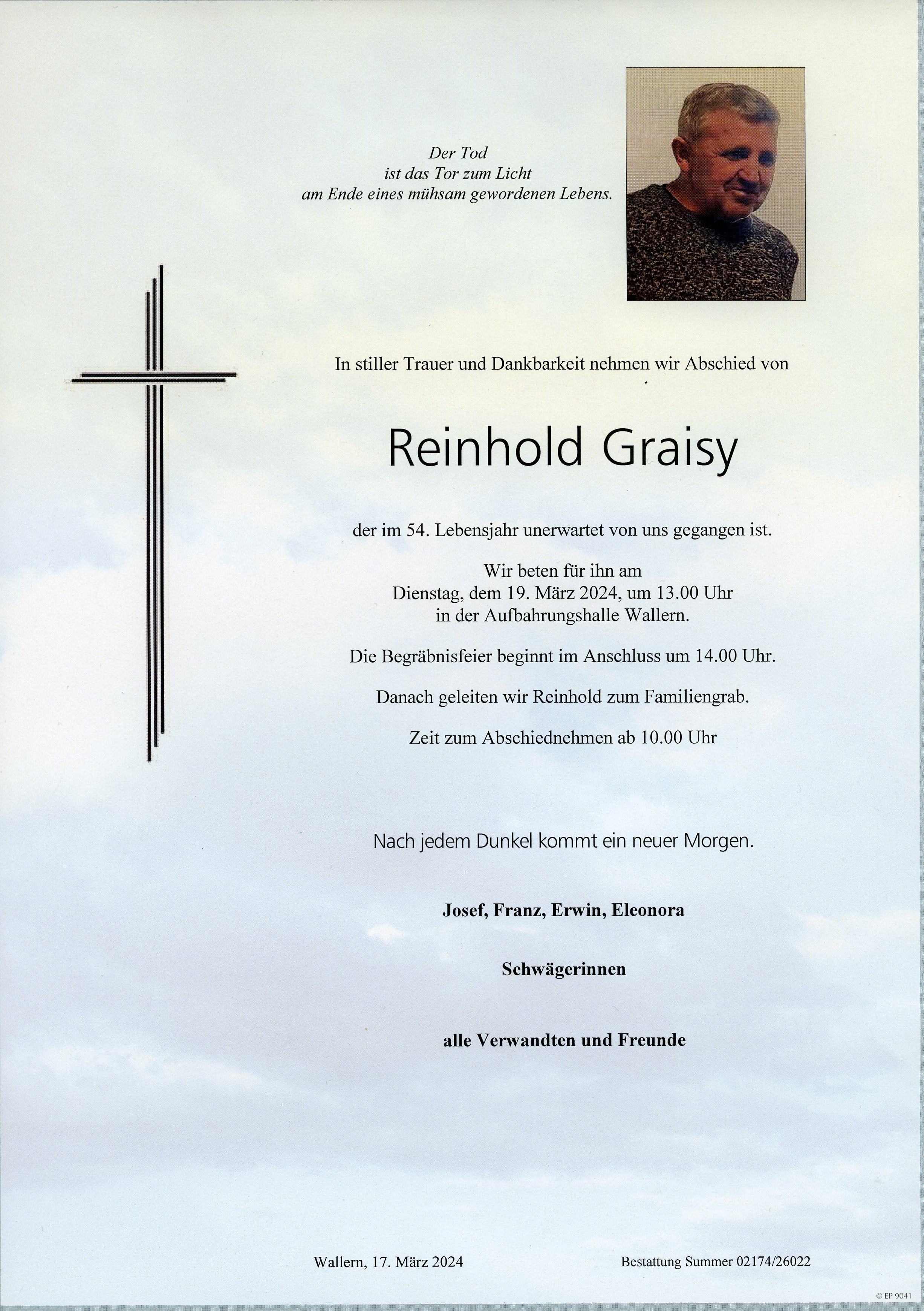Graisy Reinhold aus 7151 Wallern, gestorben am 16. März 2024