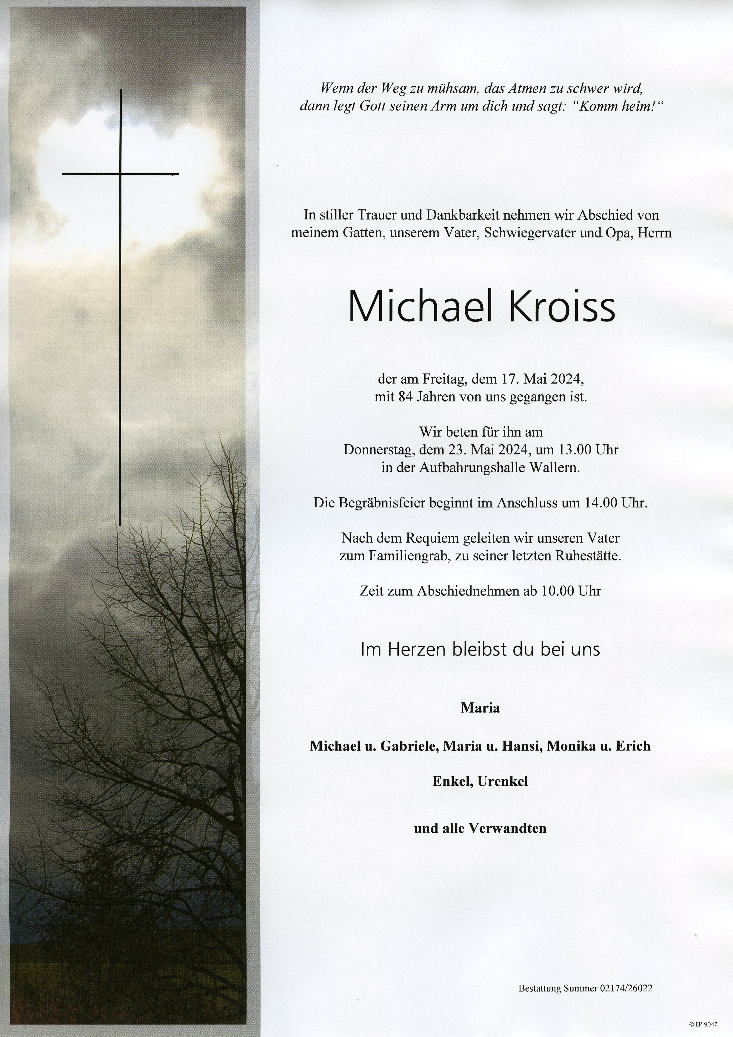Kroiss Michael aus Wallern im Burgenland, gestorben am 17. Mai 2024