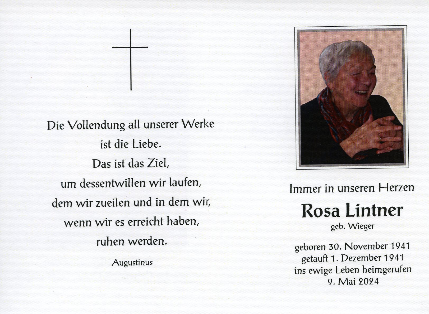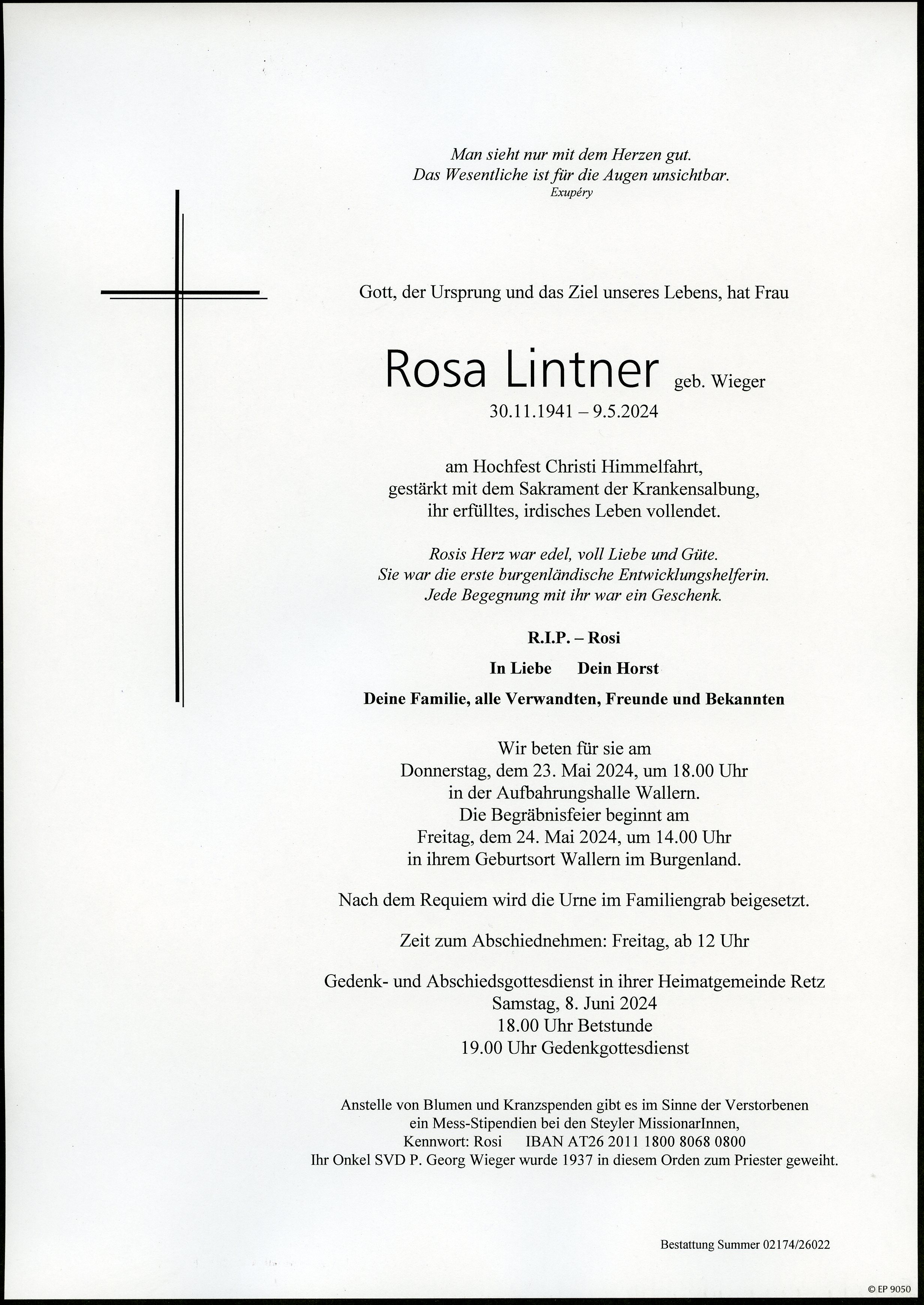 Lintner Rosa aus 2070 Retz, gestorben am 9. Mai 2024