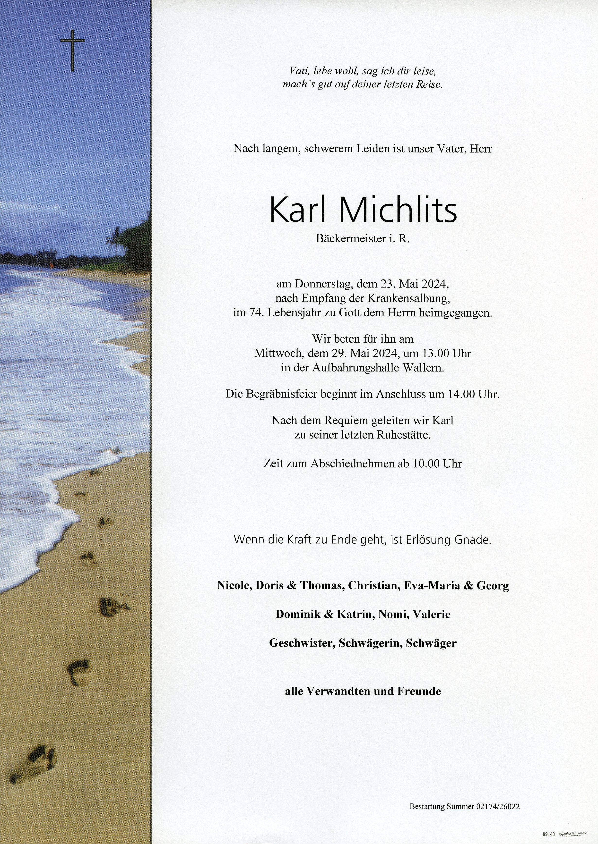 Michlits Karl aus 7151 Wallern, gestorben am 23. Mai 2024