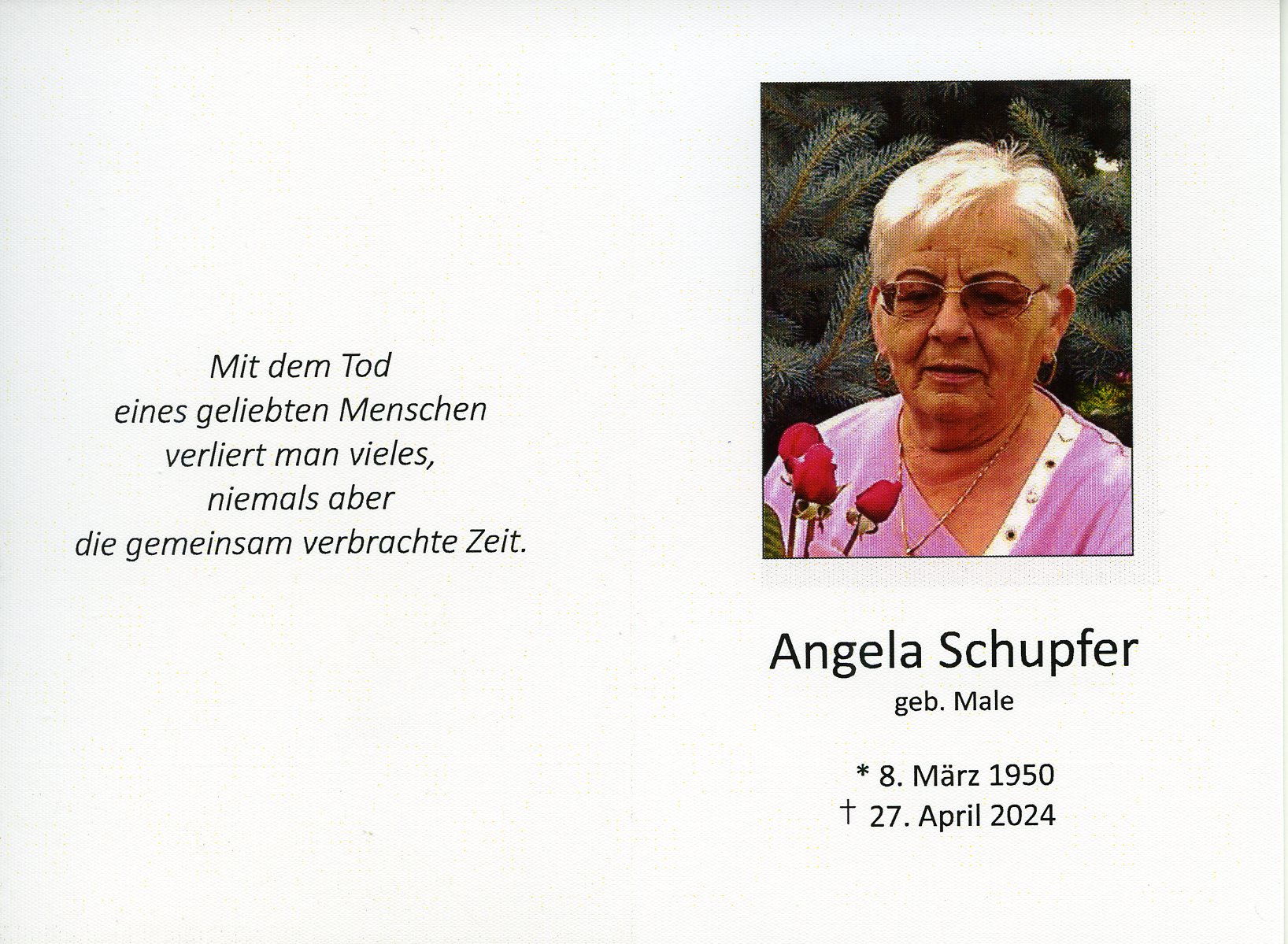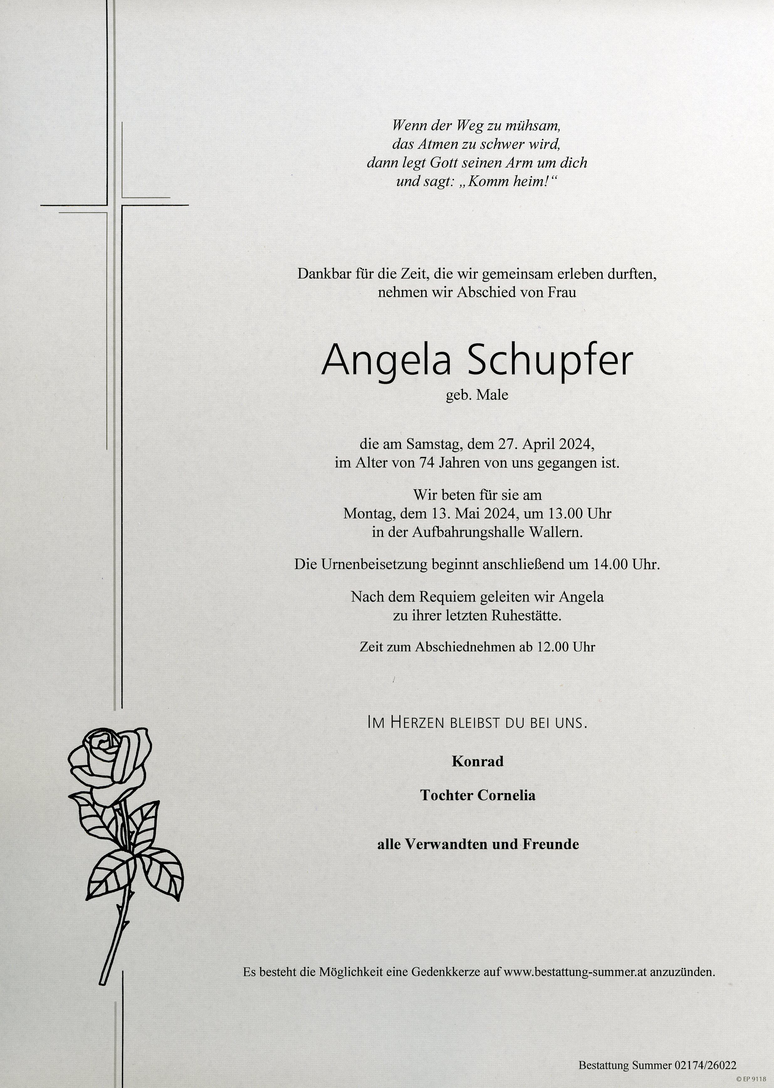 Schupfer Angela aus 7151 Wallern im Burgenland, gestorben am 27. April 2024