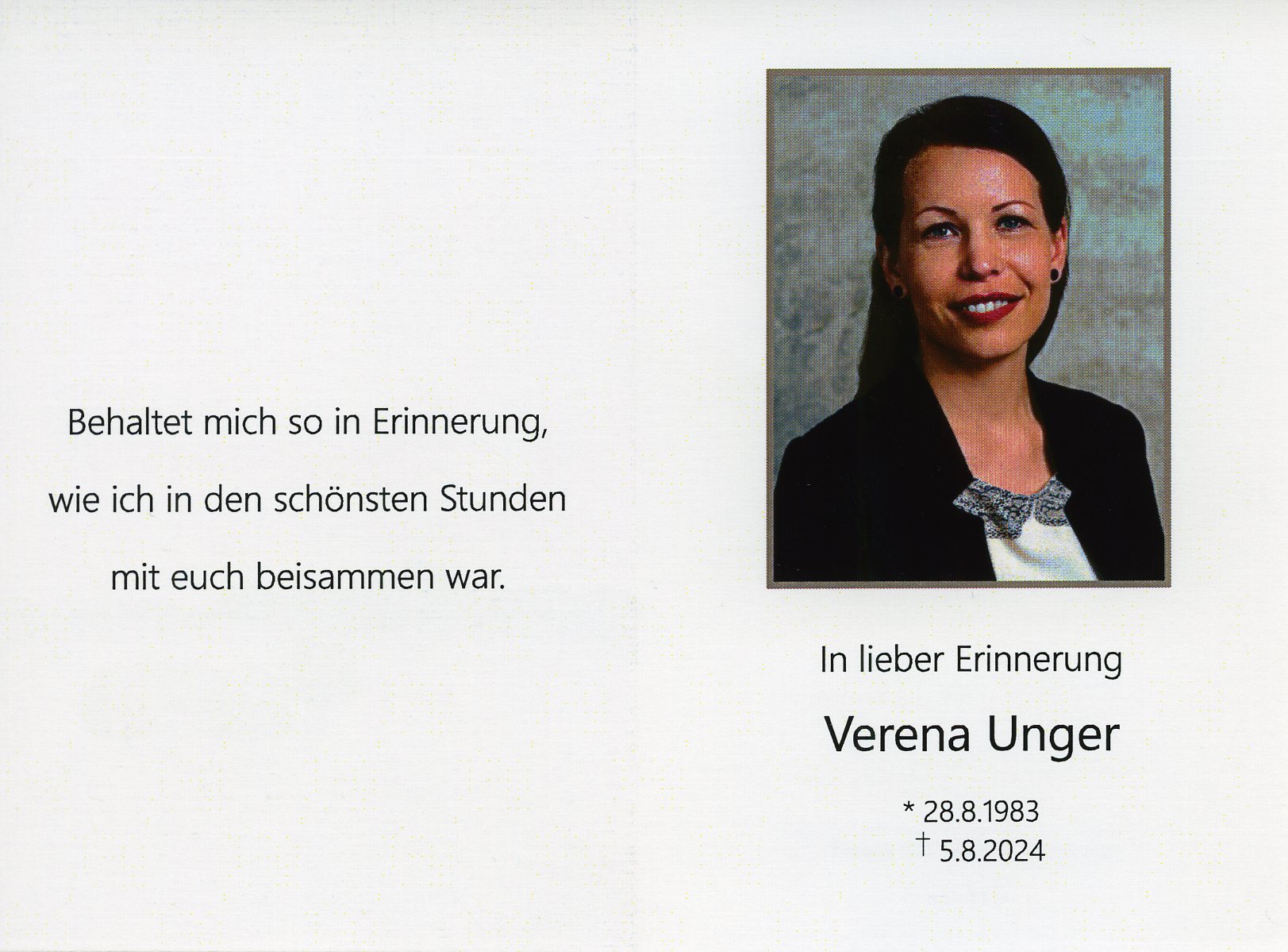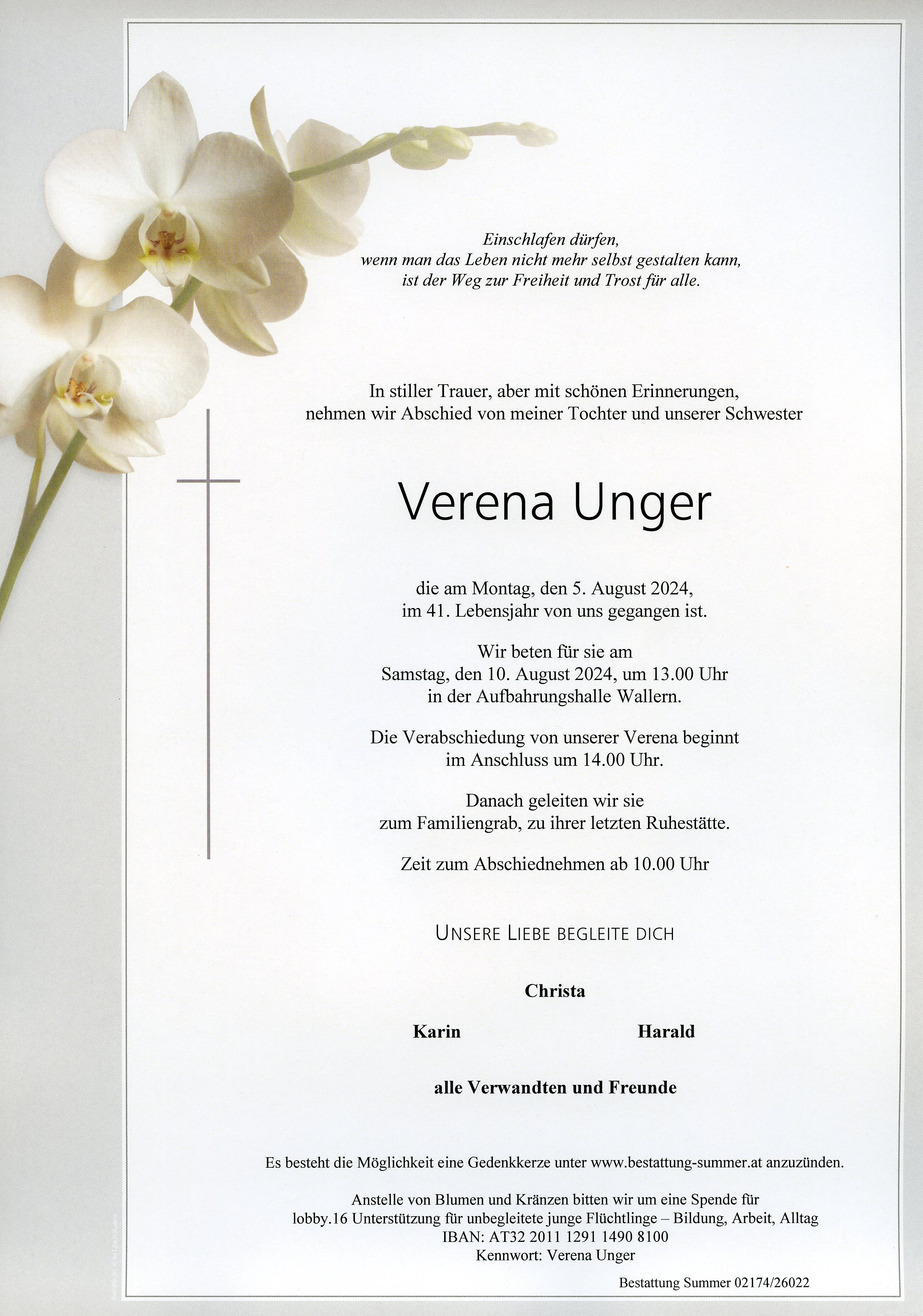 Unger Verena aus 7151 Wallern, gestorben am 5. August 2024